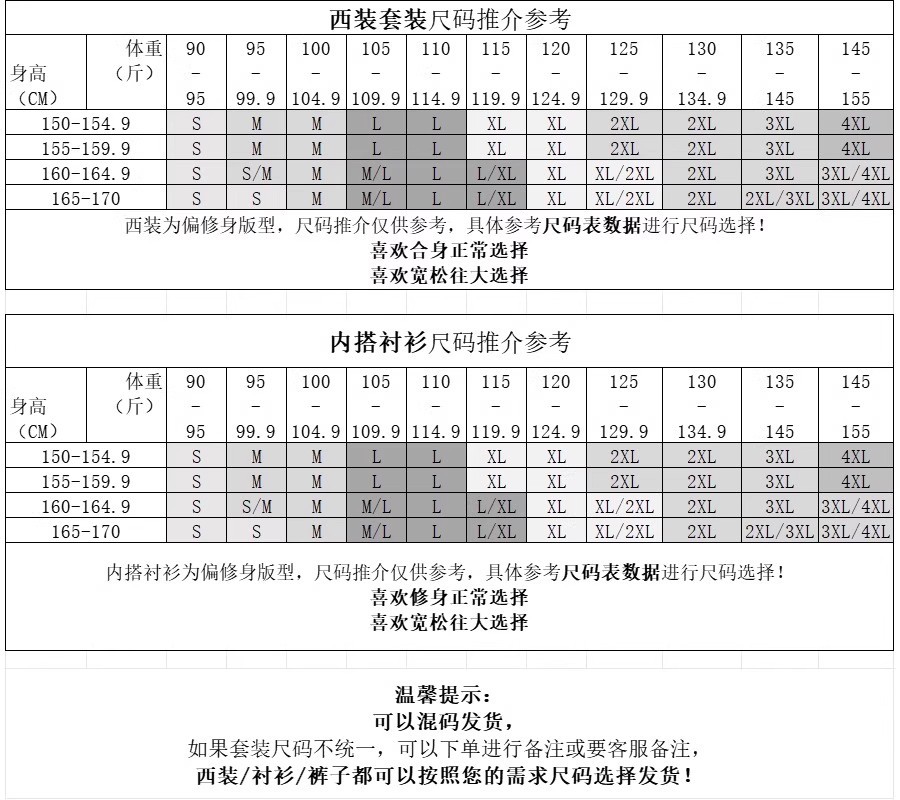 Костюм темно-синего цвета [весенне-осенний с длинными рукавами]; Серо-синий костюм [весенне-осенний с длинными рукавами]; Черный костюм [весенне-осенний с длинными рукавами]; Костюм темно-синий + брюки [весенне-осенний длинный рукав]; Серо-синий костюм + брюки [весна и осень с длинными рукавами]; Черный костюм + брюки [весенне-осенние длинные рукава]; Костюм темно-синий + брюки + белая рубашка [весенне-осенние длинные рукава]; Серо-синий костюм + брюки + белая рубашка [весенне-осенние длинные рукава]; Черный костюм + брюки + белая рубашка [весенне-осенние длинные рукава]; Одинарный темно-синий костюм [летние рукава три четверти]; Одинарный черный костюм [летние рукава три четверти]; Однотонный серо-синий костюм [летние рукава три четверти]; Однотонный темно-синий костюм + брюки [летние рукава три четверти]; Одинарный черный костюм + брюки [летние рукава три четверти]; Однотонный серо-синий костюм + брюки [летние рукава три четверти]