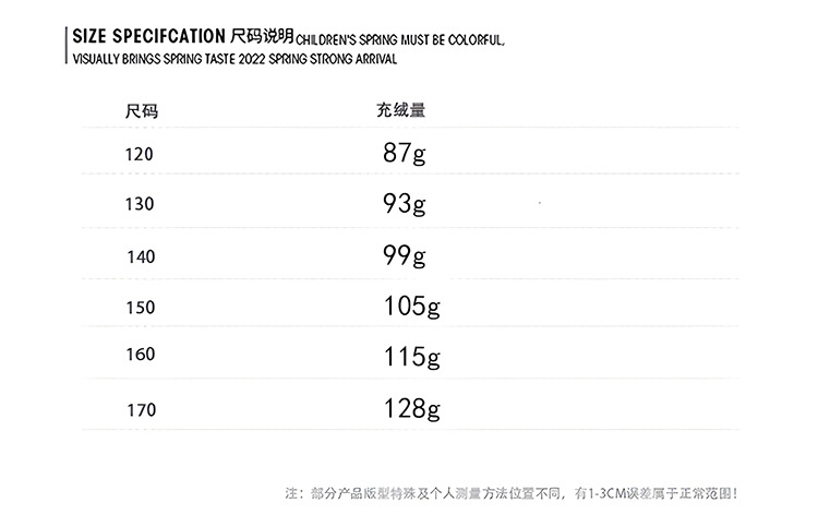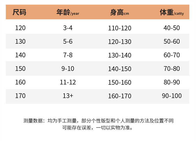 110cm; 120cm; 130cm; 140cm; 150cm; 160cm; 170cm