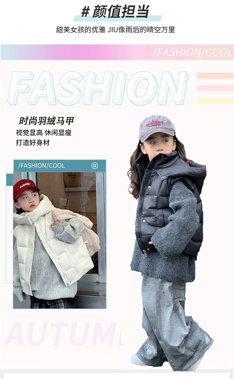 Зимний жилет для девочек 2024 новый иностранный детский пуховик жилет осень зима