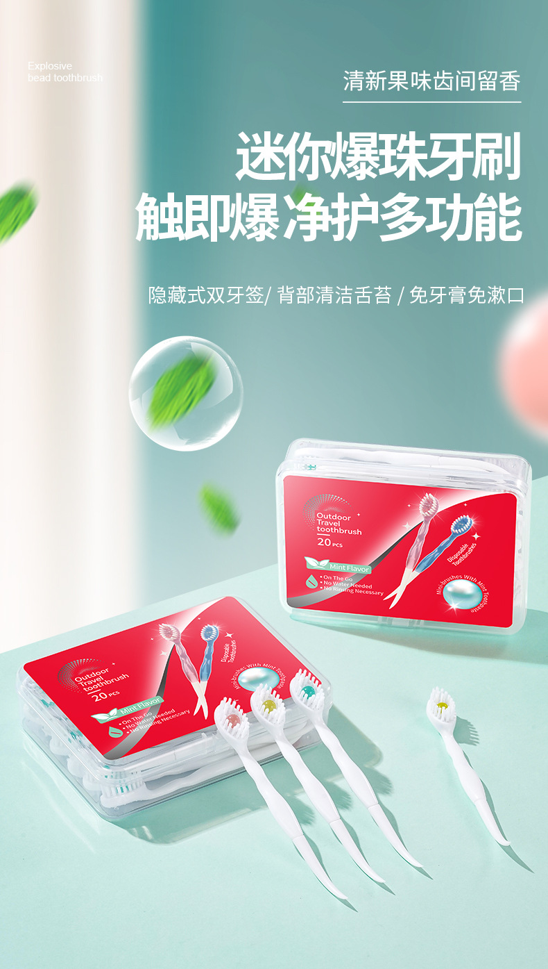 Новая модель бусина зубная щетка 20 коробок портативные одноразовые зубочистки для чистки мини-зубная щетка для путешествий оптом через границу