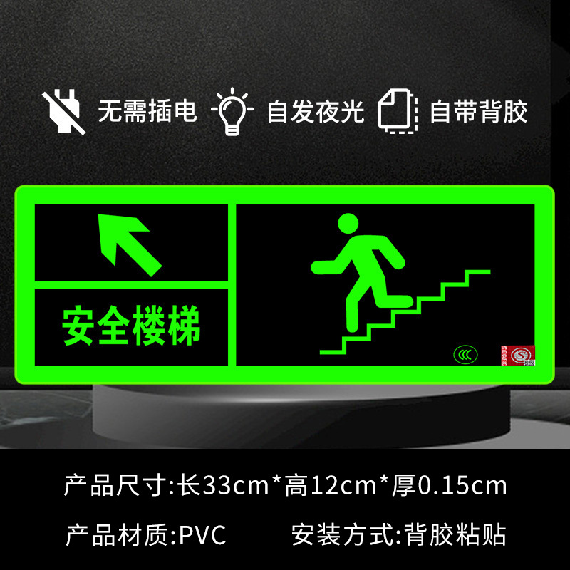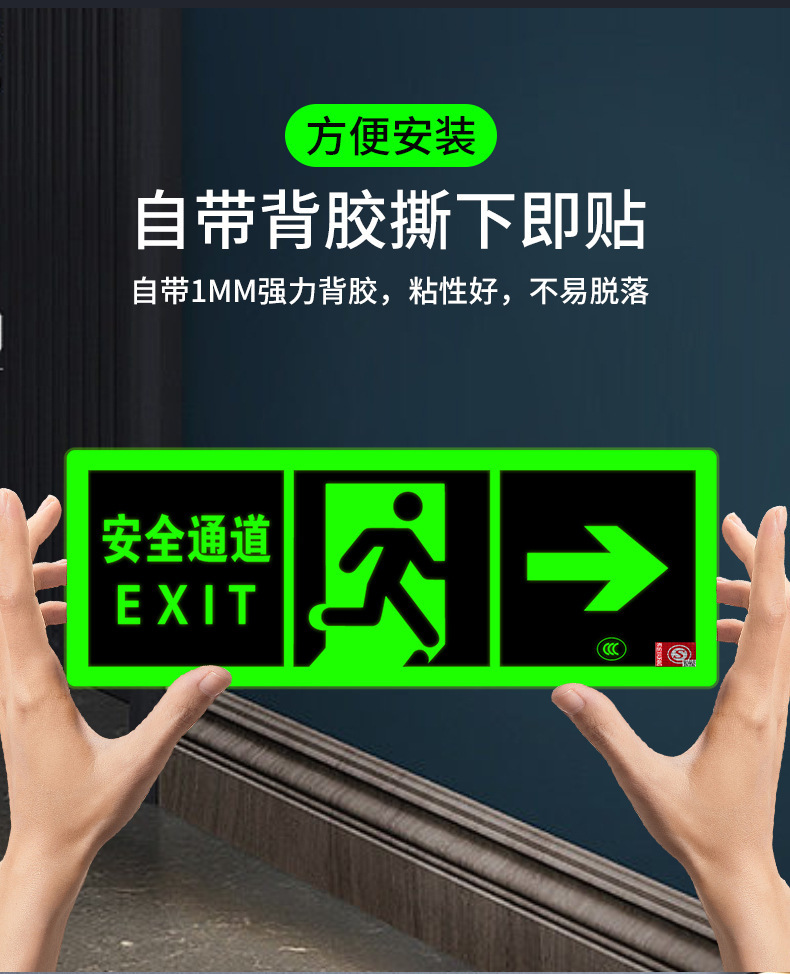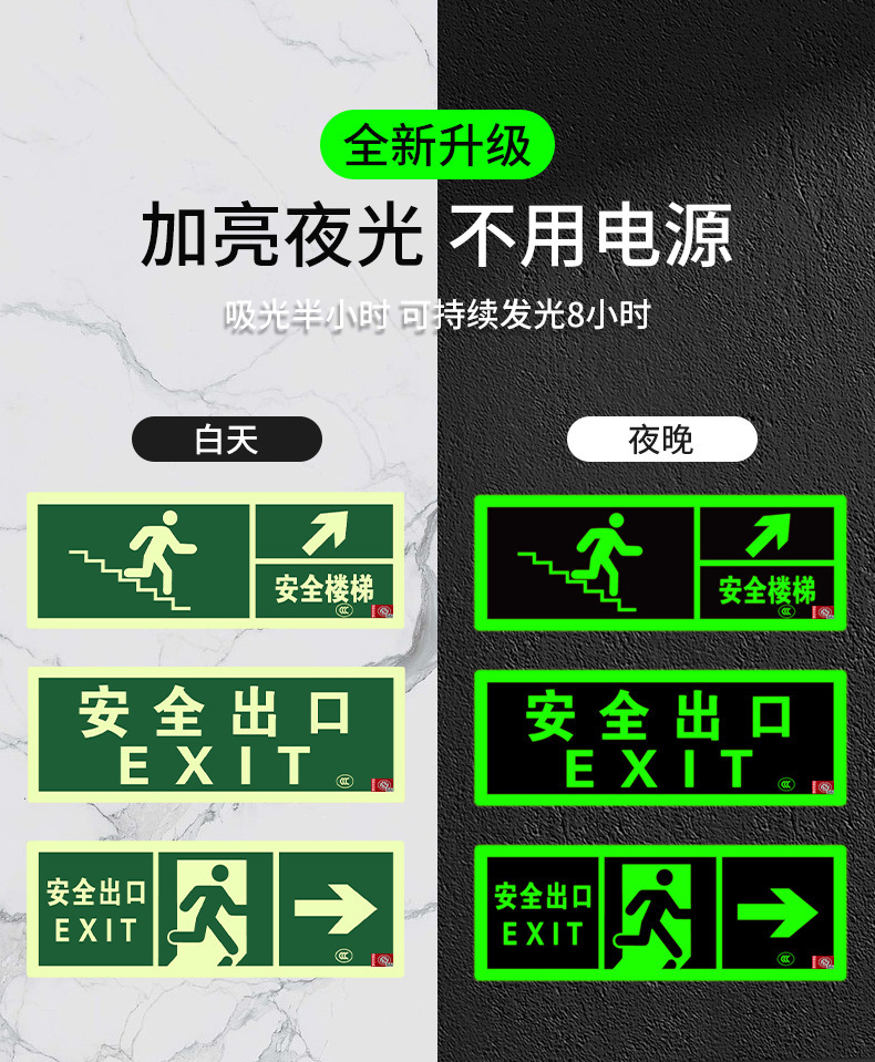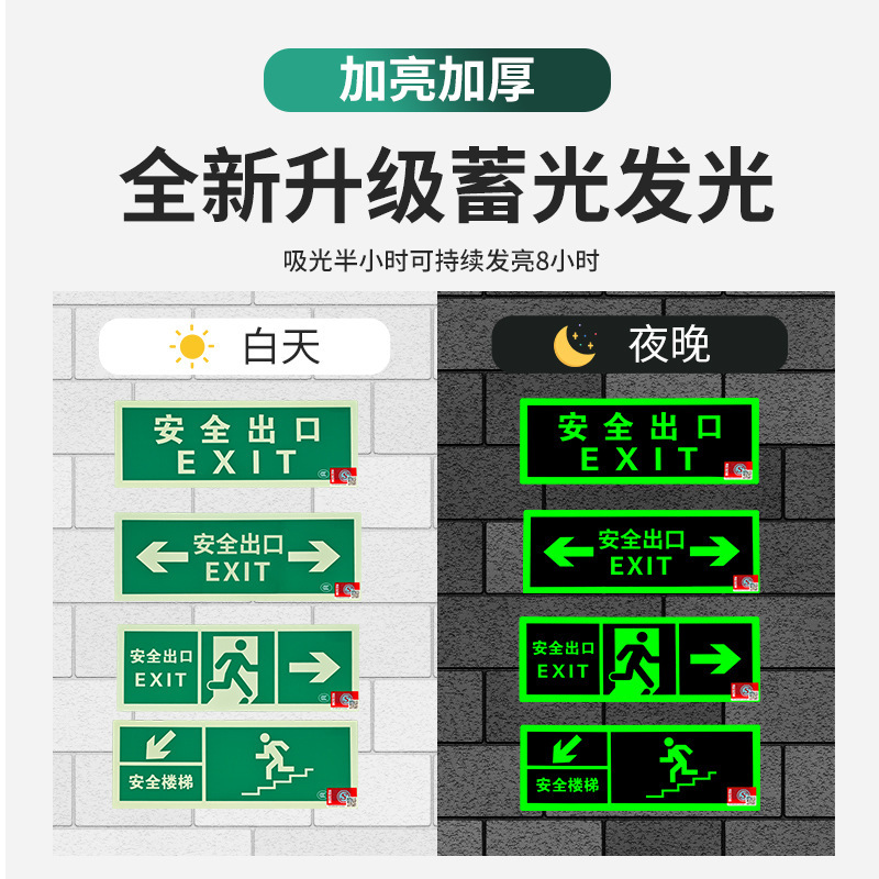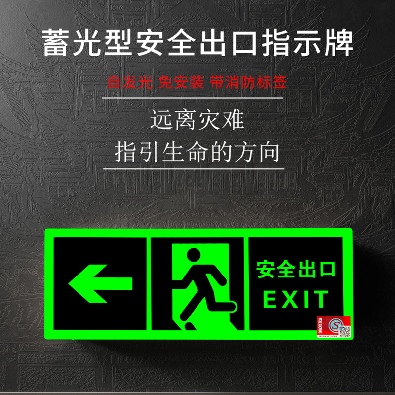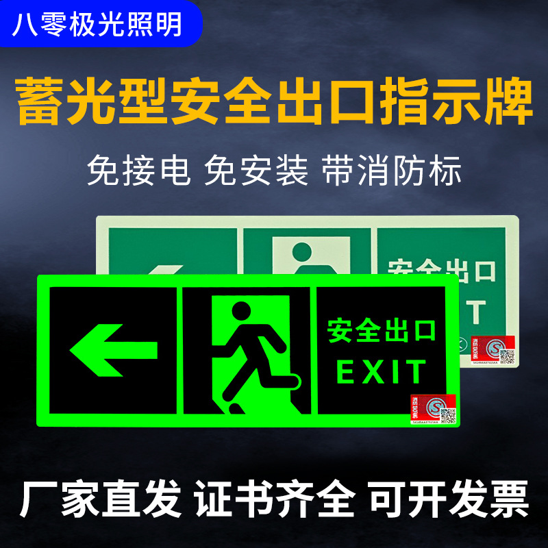 Светоотражающий знак безопасности 2024 года, новый национальный стандарт, самосветящийся, накопительный, не требует электричества, не требует сверления, самоклеящийся, для эвакуации при пожаре