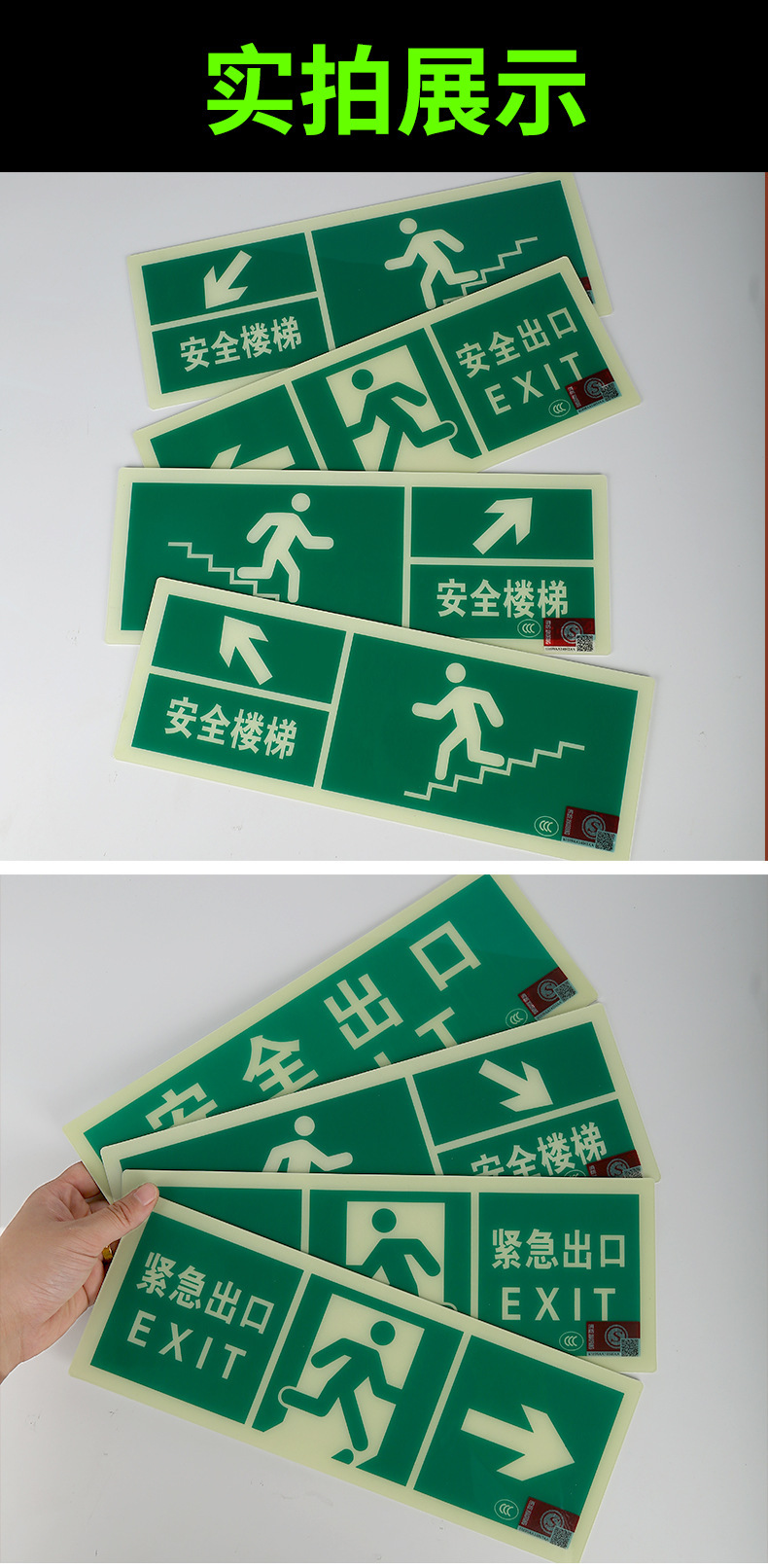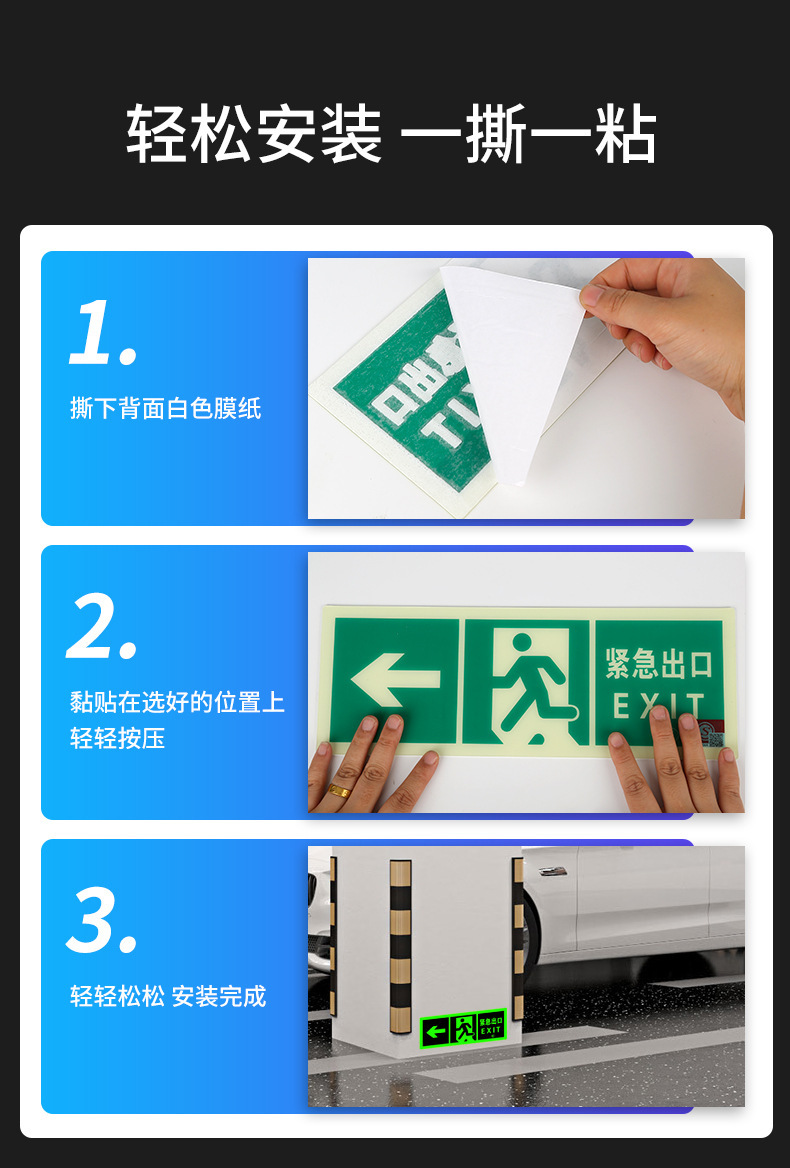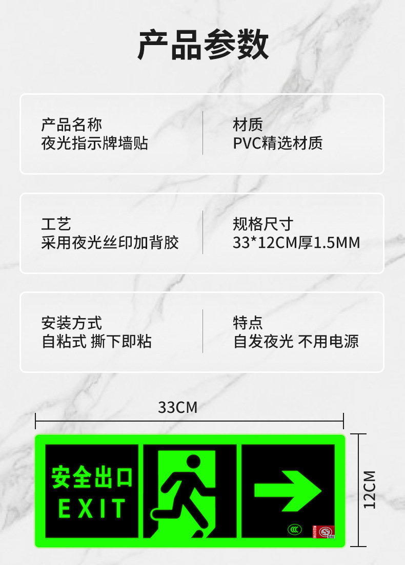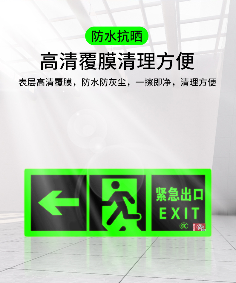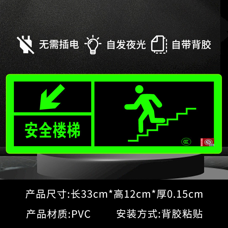 Светоотражающий знак безопасности 2024 года, новый национальный стандарт, самосветящийся, накопительный, не требует электричества, не требует сверления, самоклеящийся, для эвакуации при пожаре