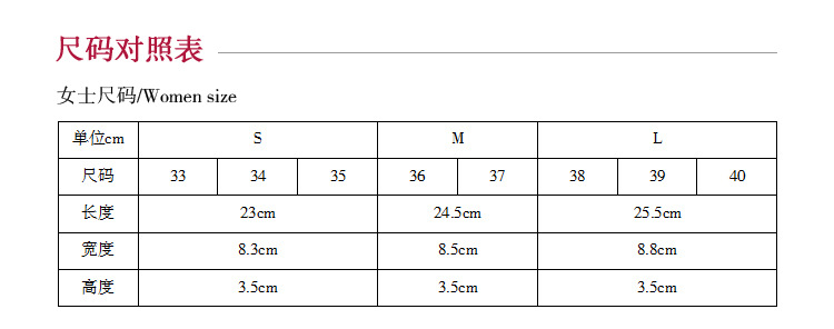 Размер S 23,5 см.; Размер М 24,5 см.; Размер L 25,5 см.