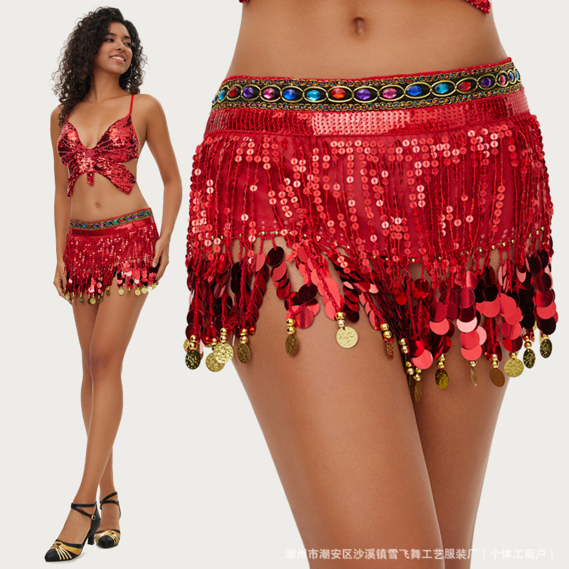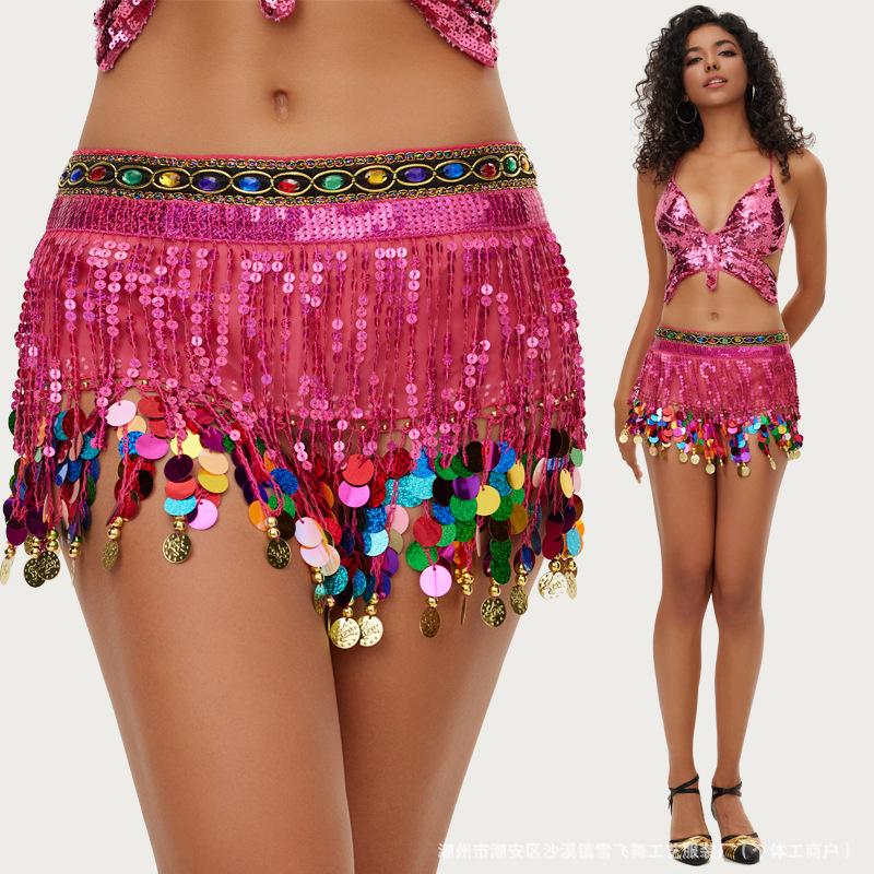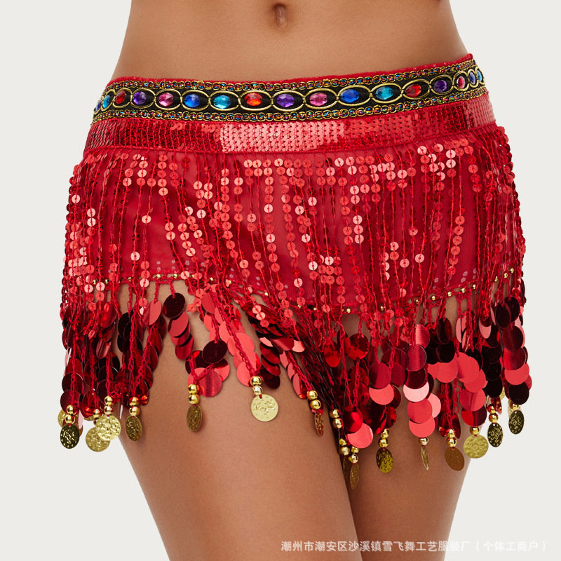 Новая цепочка танца живота талии ручной работы ягодичный шарф с блестками из кисточек талия шарф индийский танцевальный стол