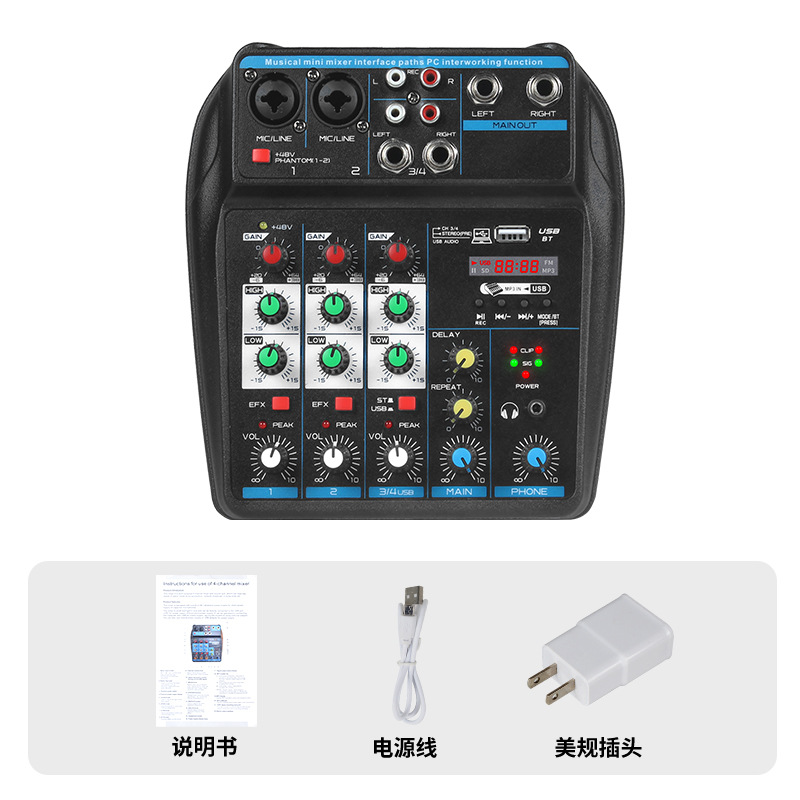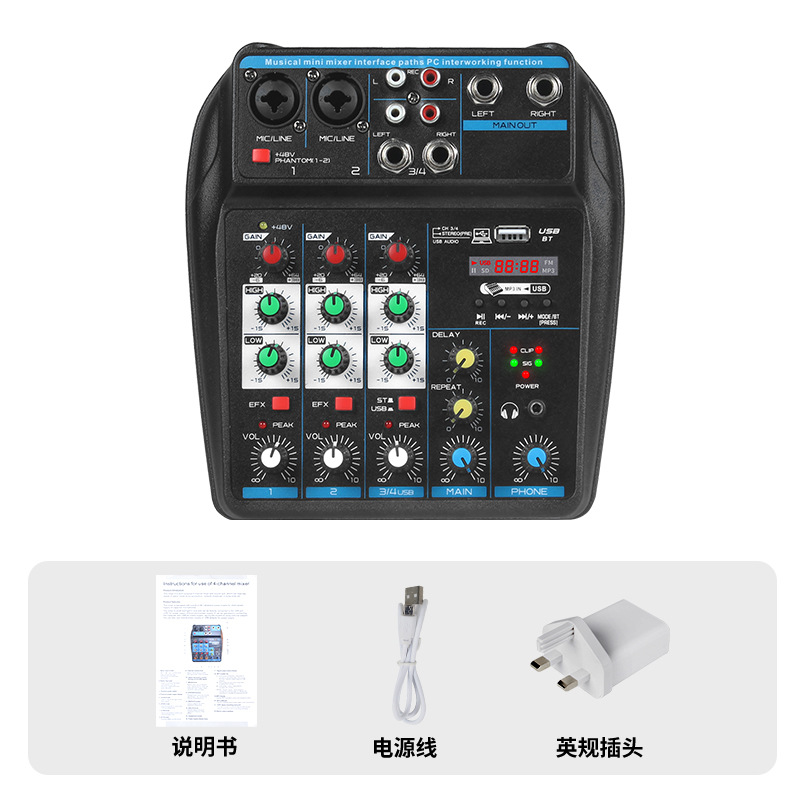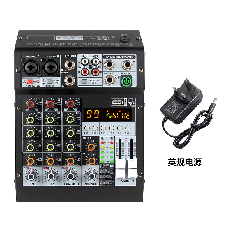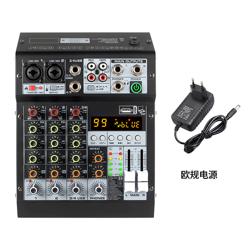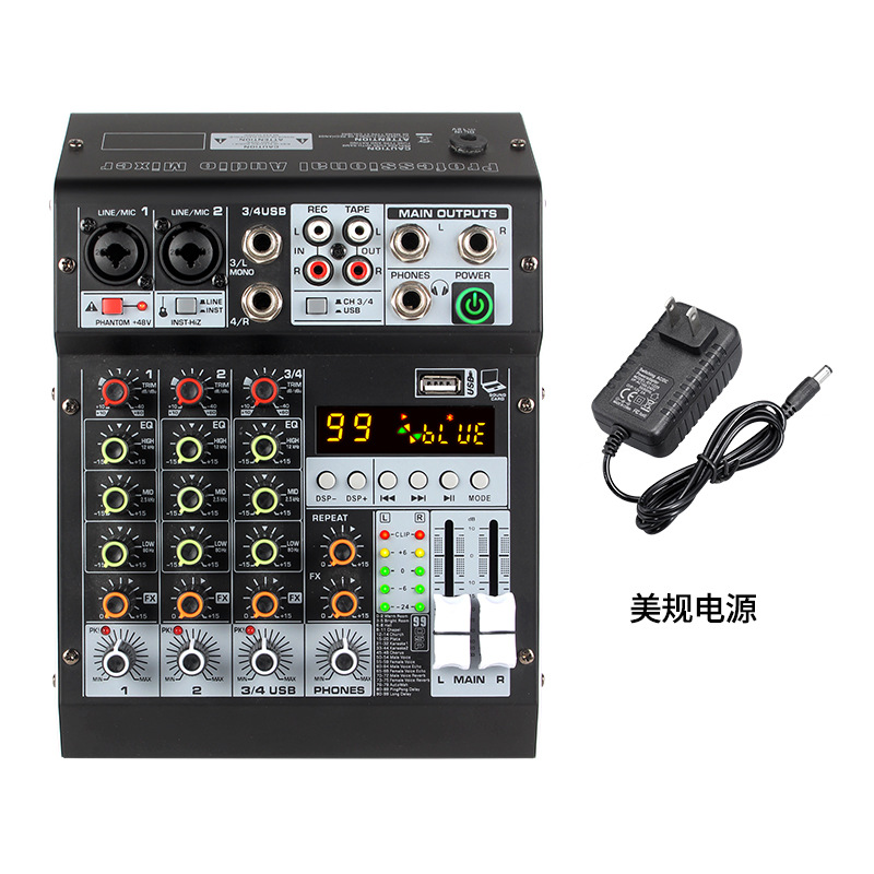 Профессиональный 4-сторонний небольшой микшер с реверберацией, мобильный телефон, компьютер, прямая трансляция, USB-запись, DJMixer, микшер