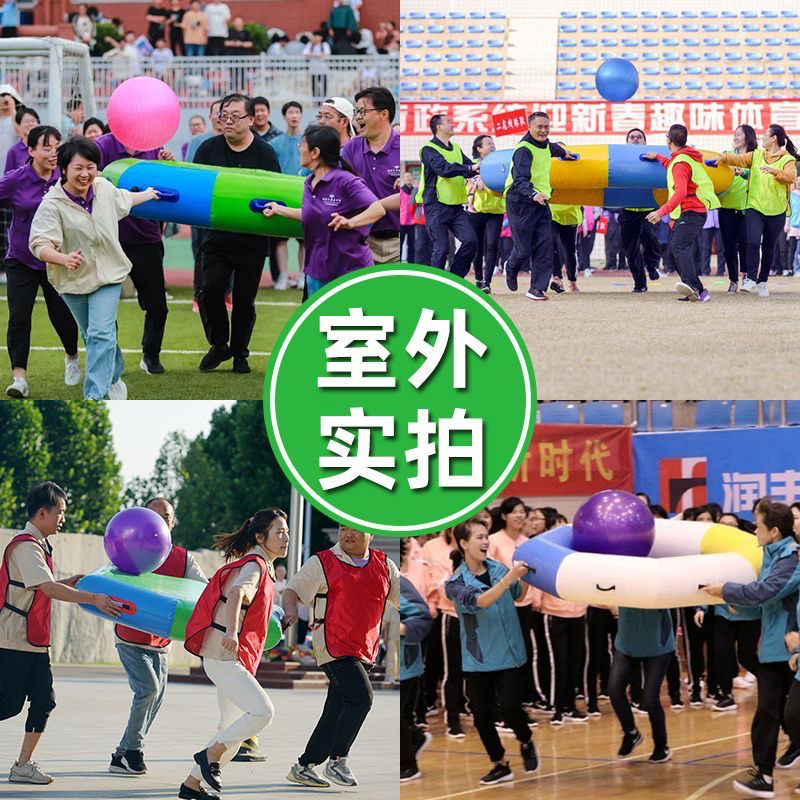 Забавные реквизиты для спортивных мероприятий: надувной барабан-гром, командный барабан, оборудование для тимбилдинга, игры с барабанами и отскоком мяча.