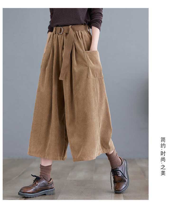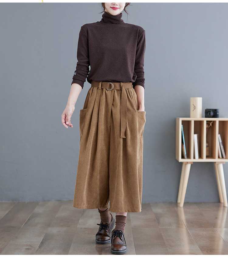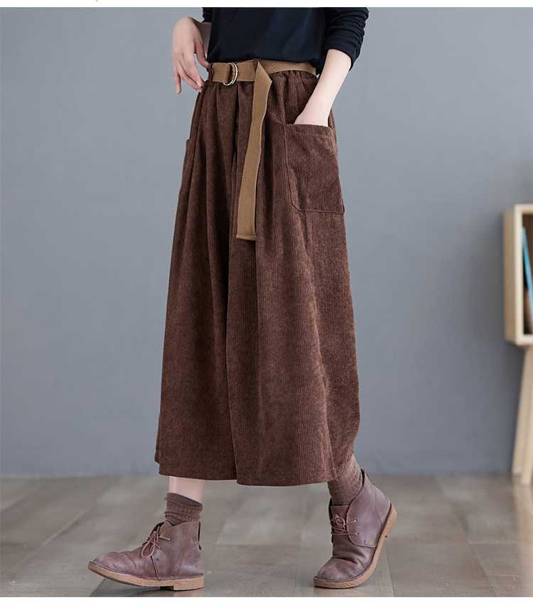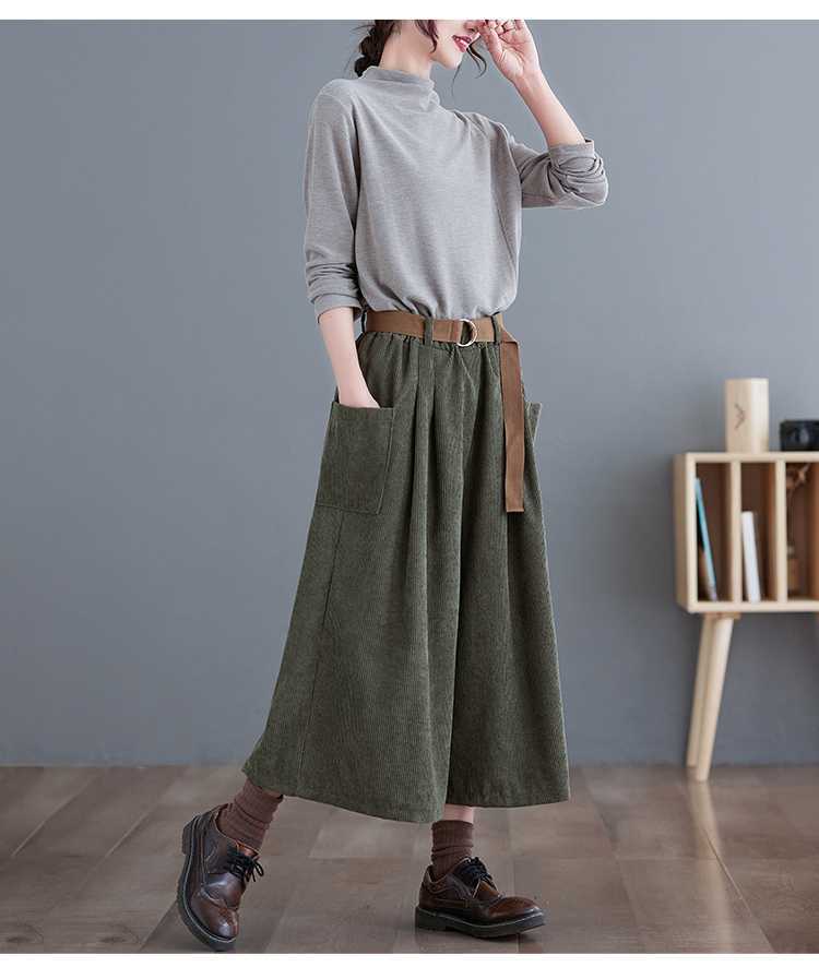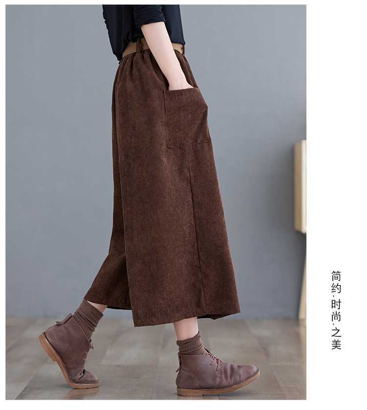 Реальный выстрел вельветовая юбка женские эластичный пояс, рыхлый, тонкий, универсальный широкий штаны