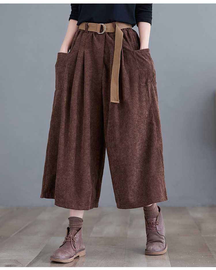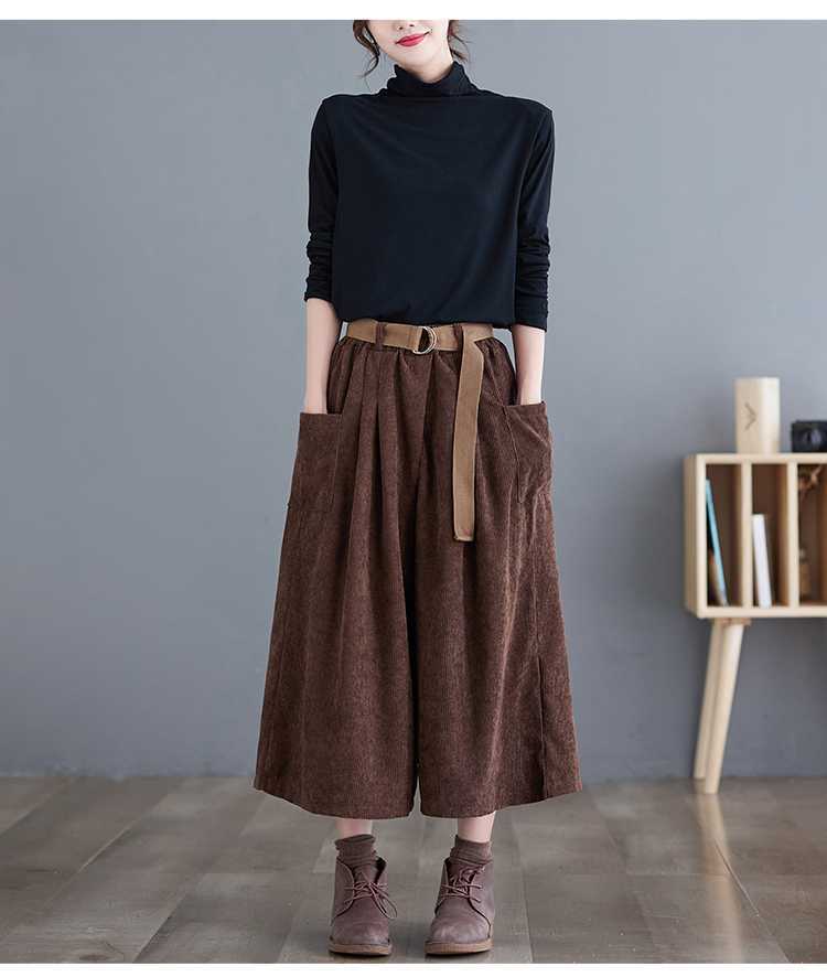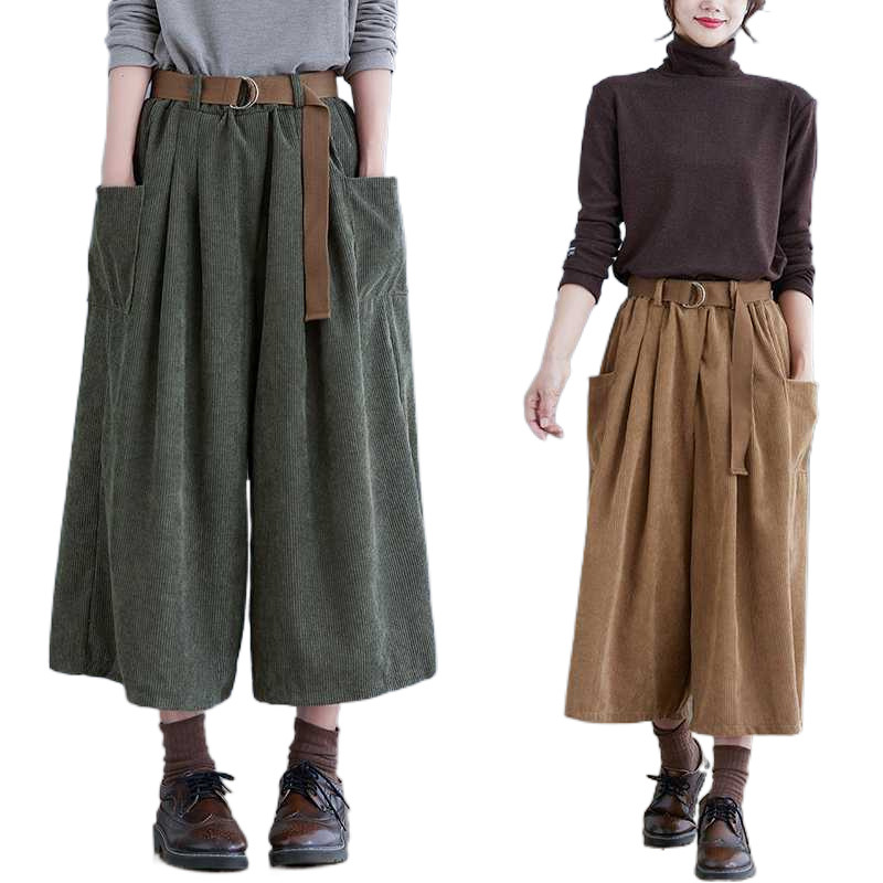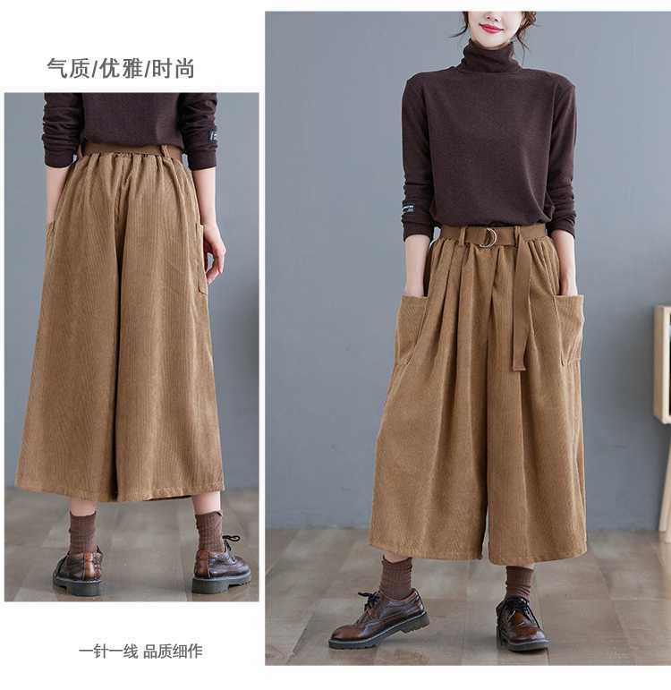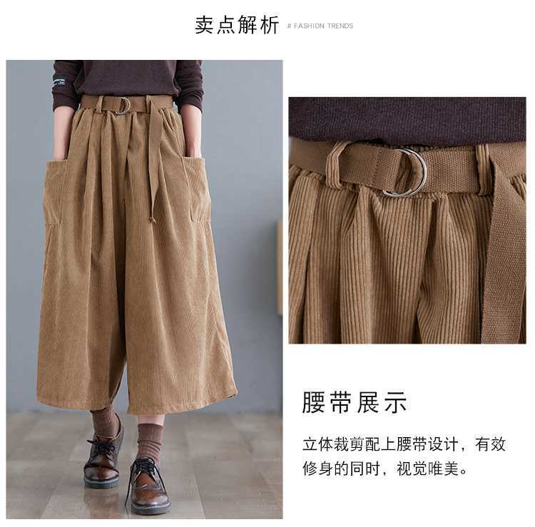 Реальный выстрел вельветовая юбка женские эластичный пояс, рыхлый, тонкий, универсальный широкий штаны