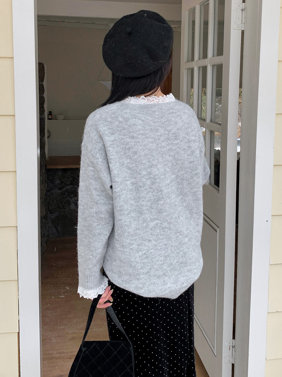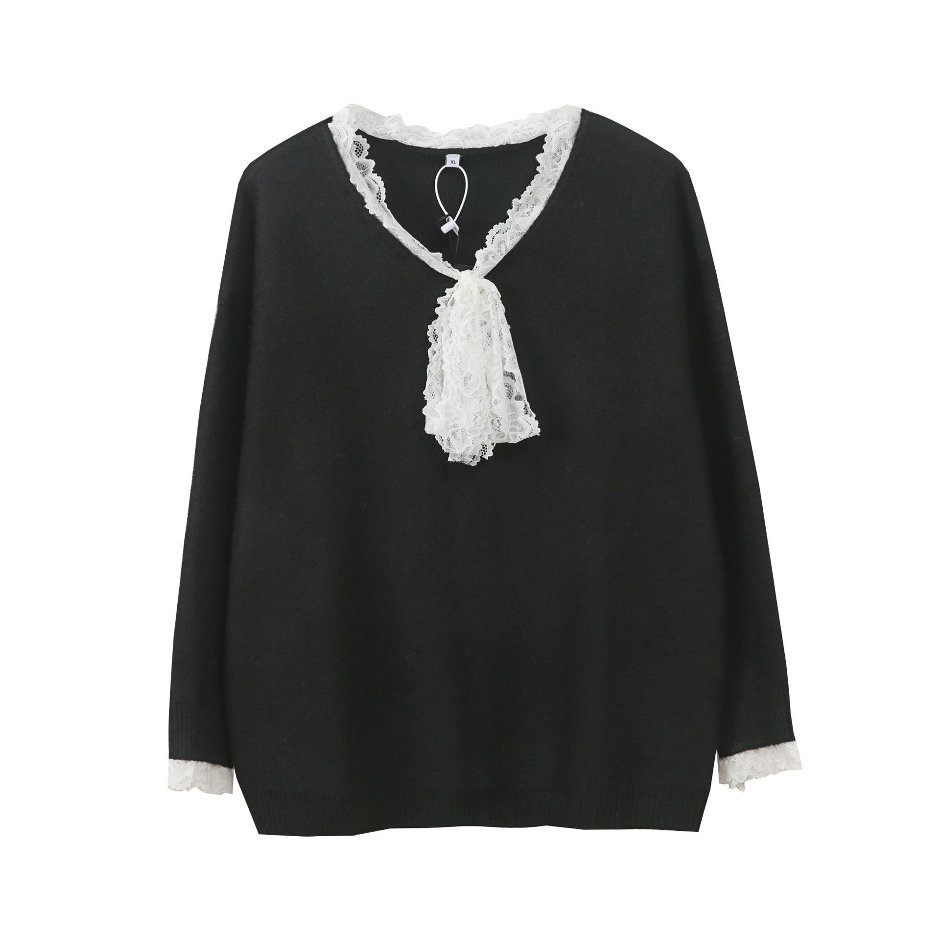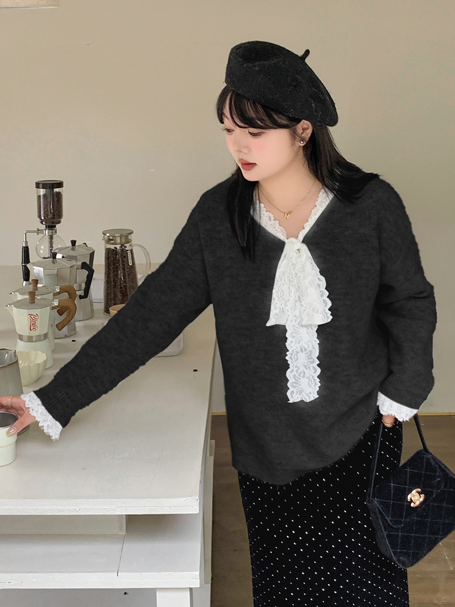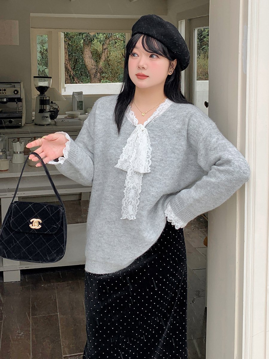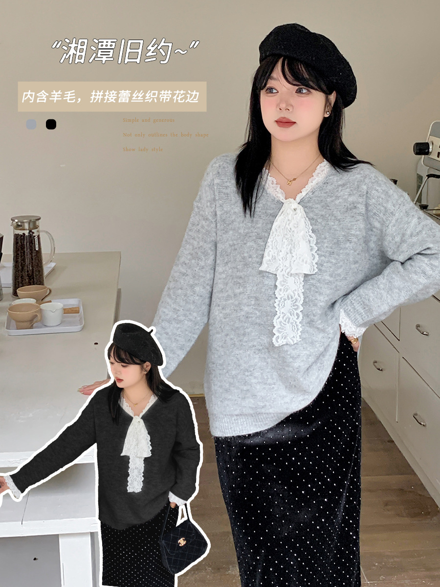 Женский пуловер-свитер с кружевной лентой, новый зимний стиль для полных женщин, мягкий и универсальный шерстяной топ 431932.