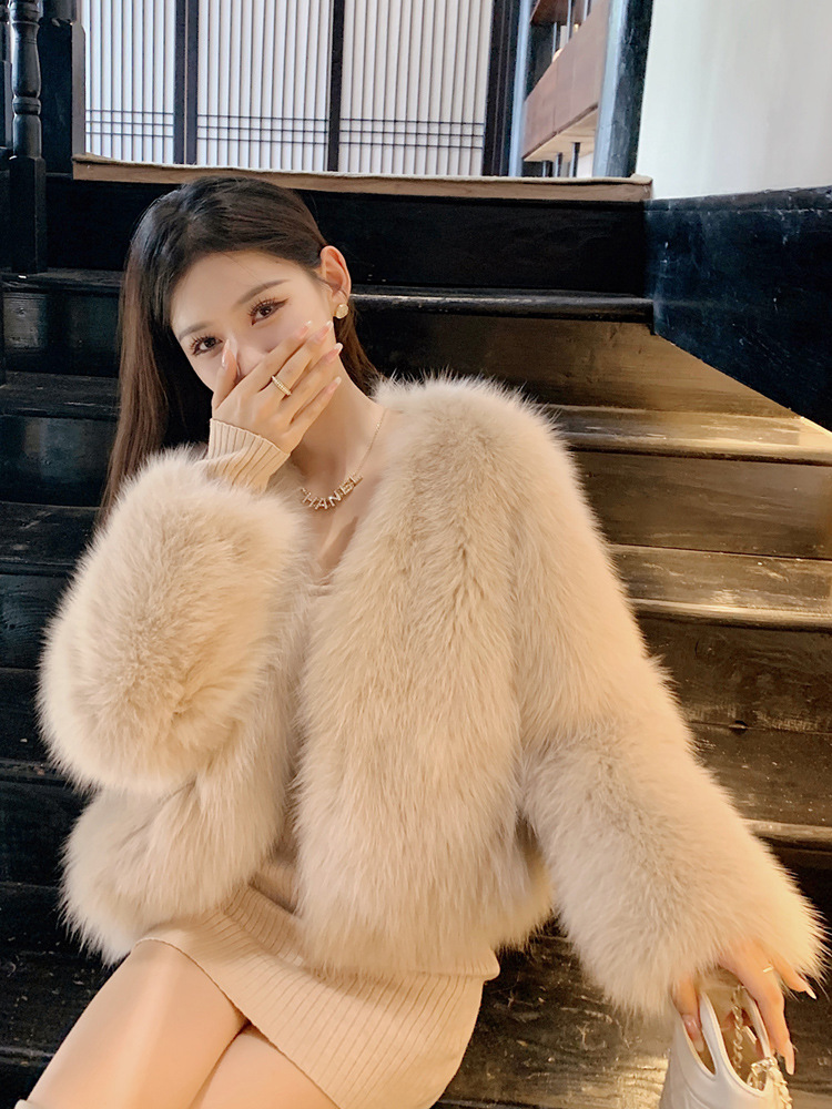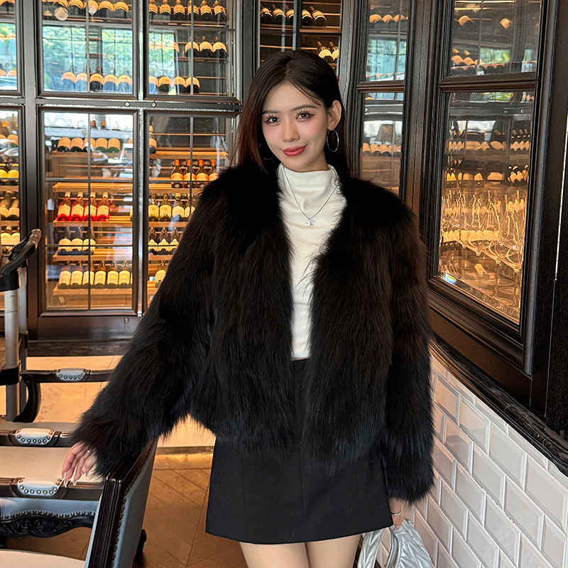 2024 новый зимний экологически чистый лисий мех меховое пальто женское модное короткое шерстяное пальто темперамент с v-образным вырезом
