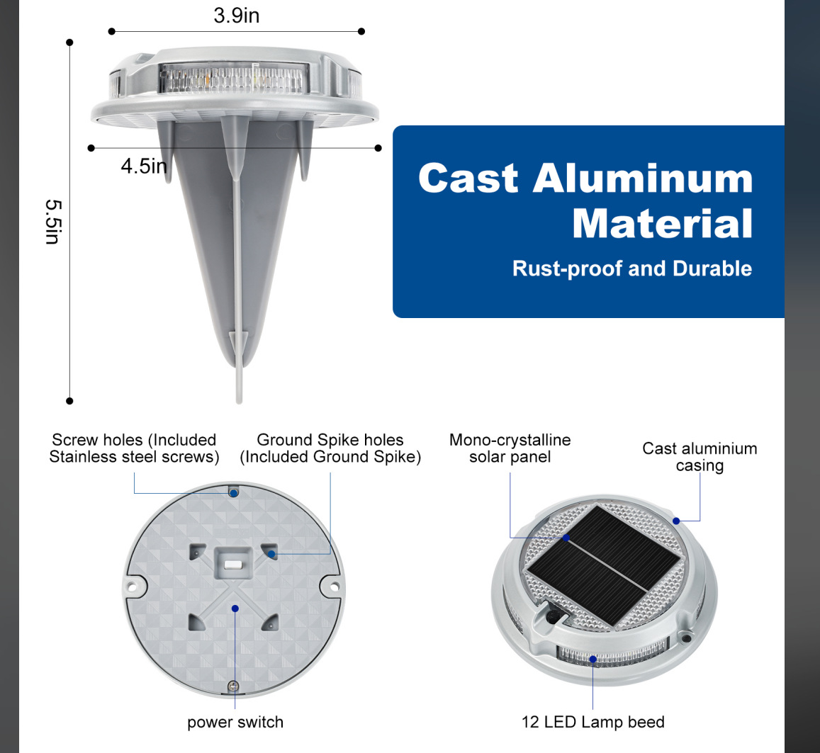 Солнечный панельный свет на открытом воздухе похороненный путь ступеньки дока RGB переключатель алюминиевого сплава высокого давления