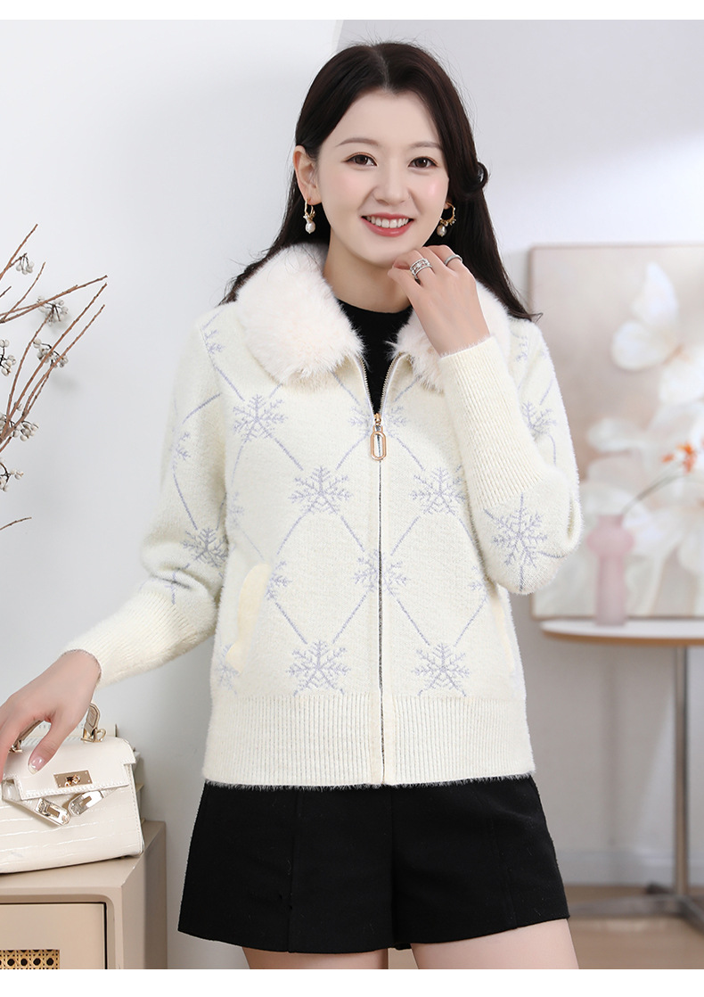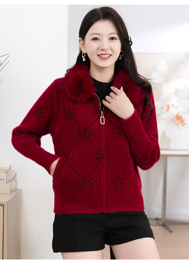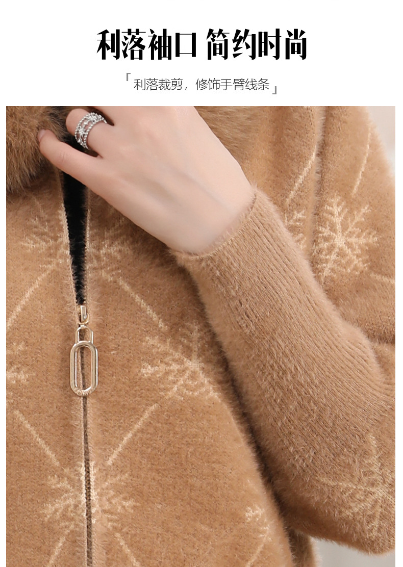 Внешняя торговля, экспорт, трансграничная одежда для мам, имитация норки, бархатная вязаная куртка на молнии, большой меховой воротник, женский осенне-зимний свитер среднего возраста, модный