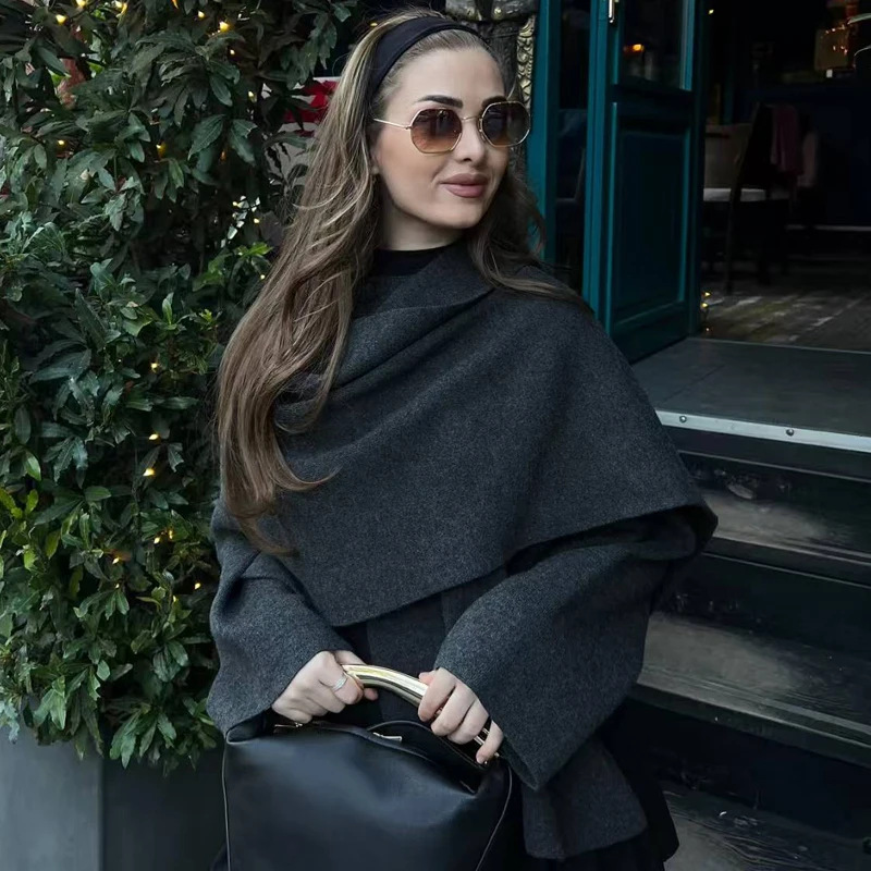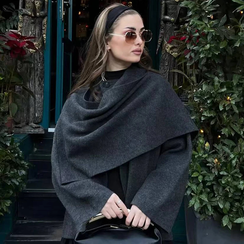 Женская одежда для трансграничной торговли на AliExpress: новая асимметричная вязаная куртка-шарф для осени и зимы в европейском и американском стиле