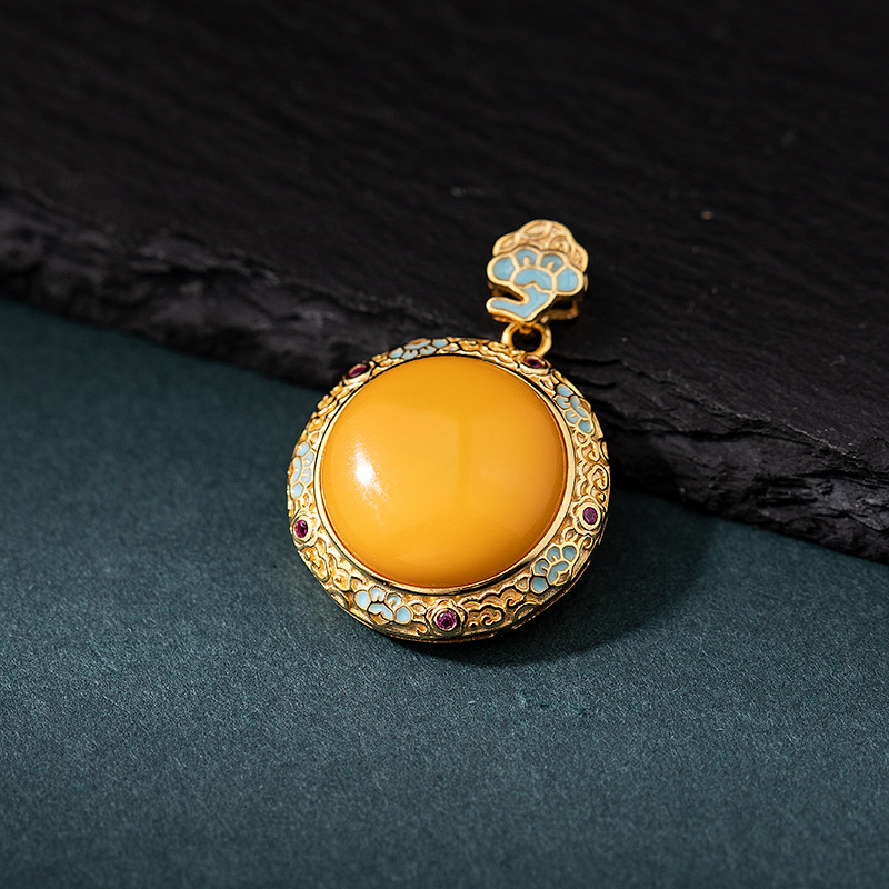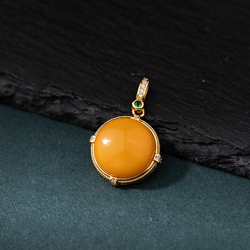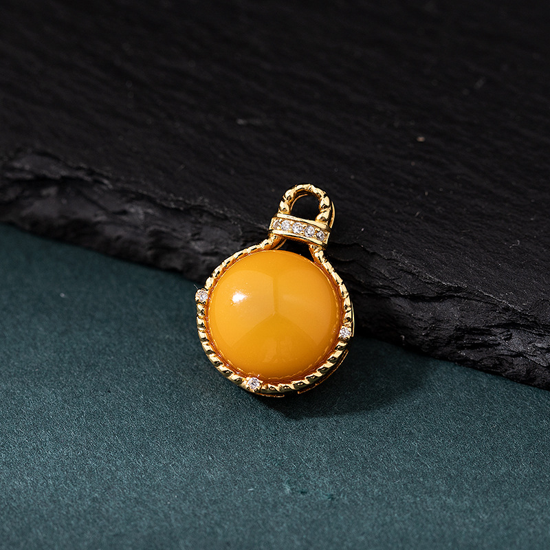Натуральное янтарное куриное масло желтый круглый медовый воск подвеска 925 серебряный позолоченный инкрустированный модный дикий ожерелье подвеска женская модель