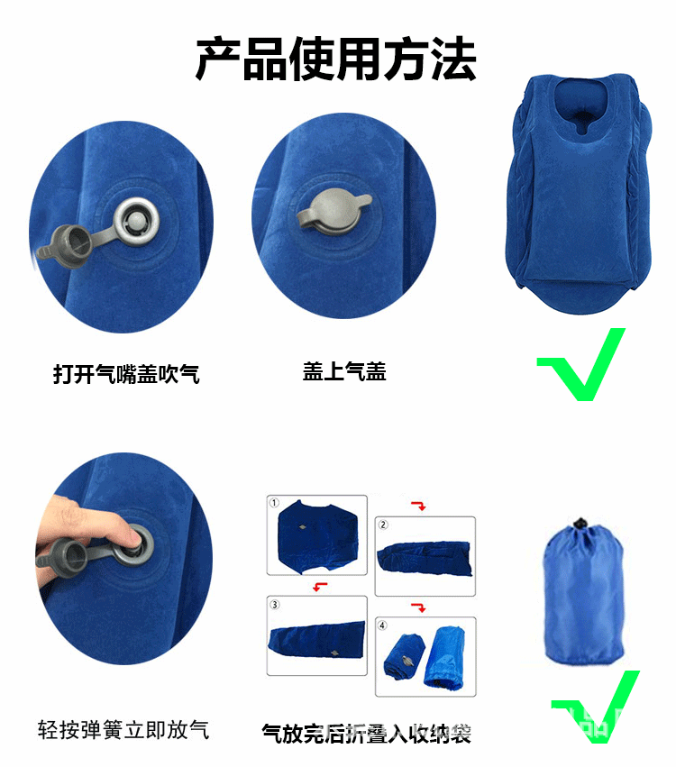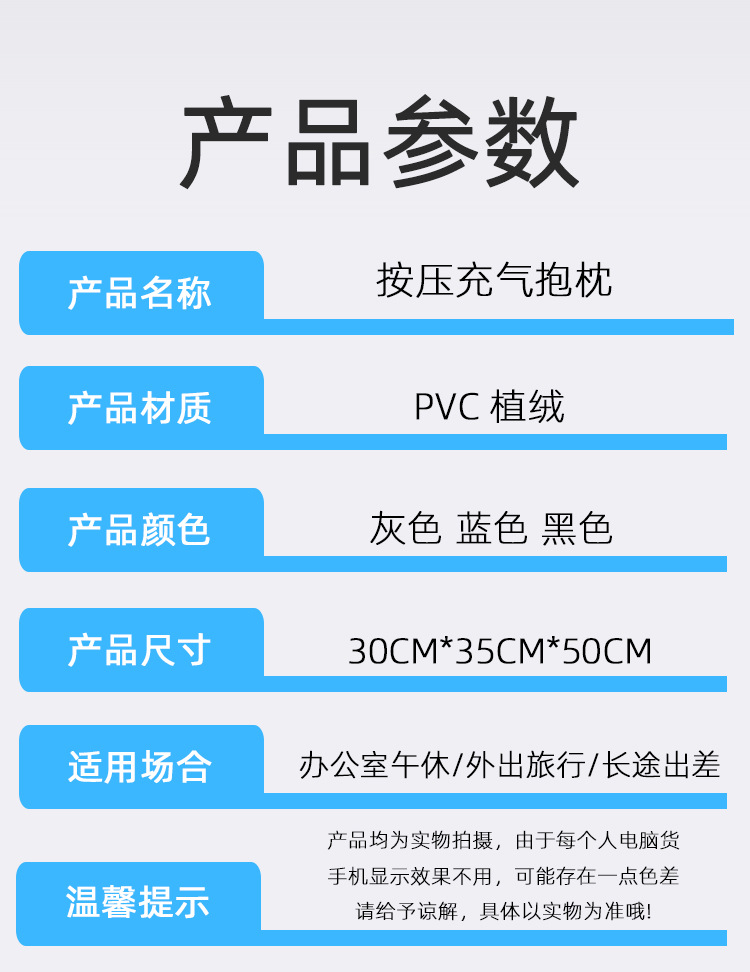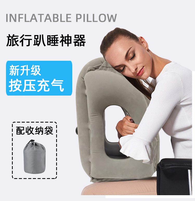 户外旅行充气枕 pvc植绒车载抱枕/充氣枕頭
