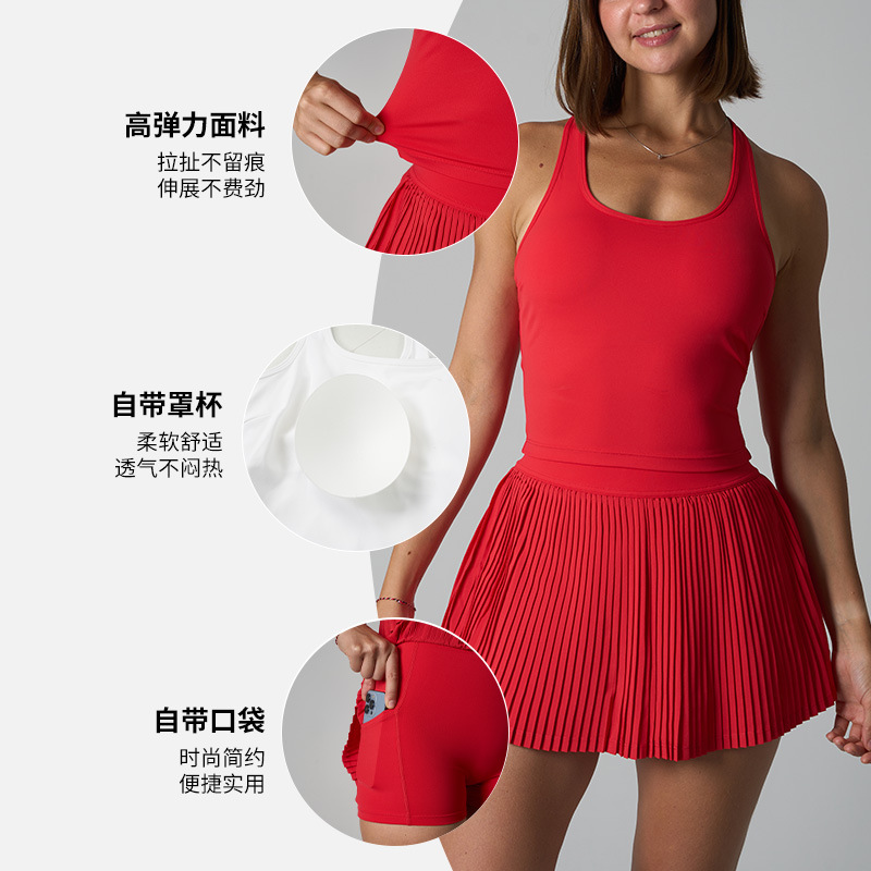 Спортивный комплект для бадминтона: юбка-шорты с высокой талией и эффектом «второй кожи», со встроенными чашками для поддержки груди, для тенниса, бега и фитнеса на открытом воздухе, для женщин