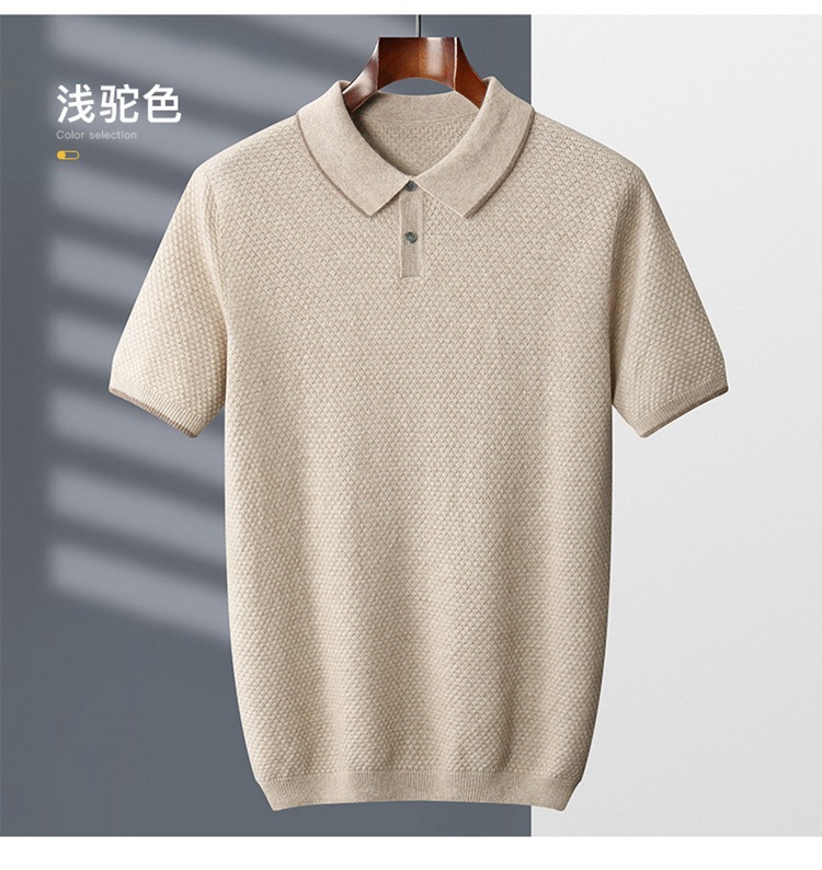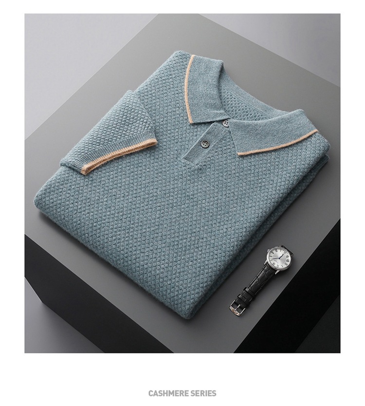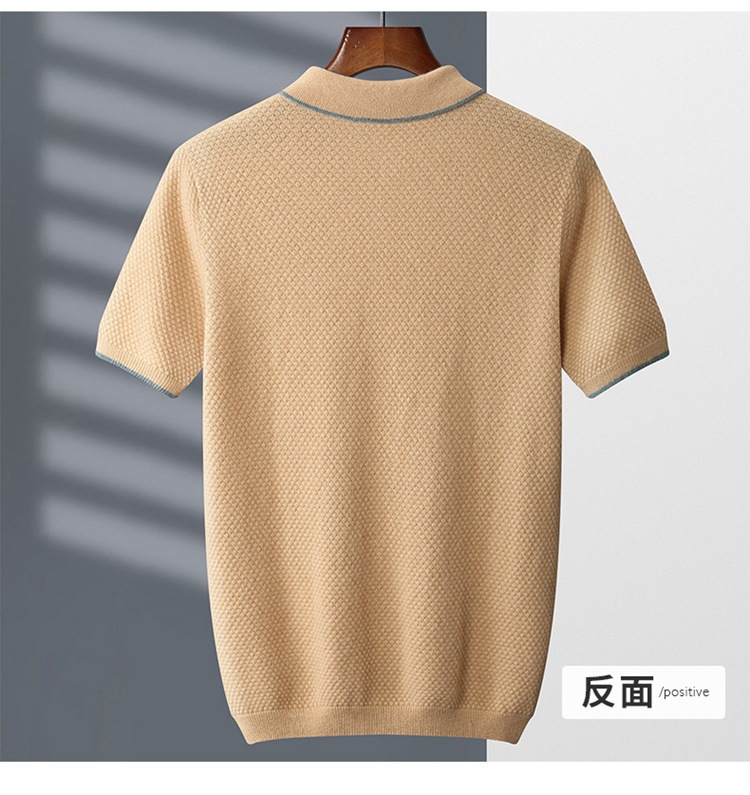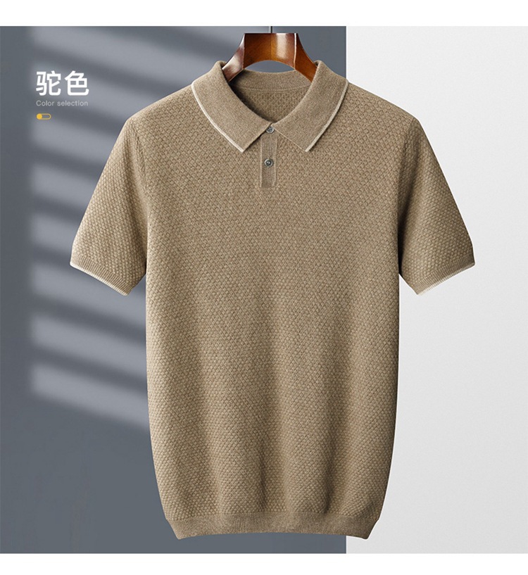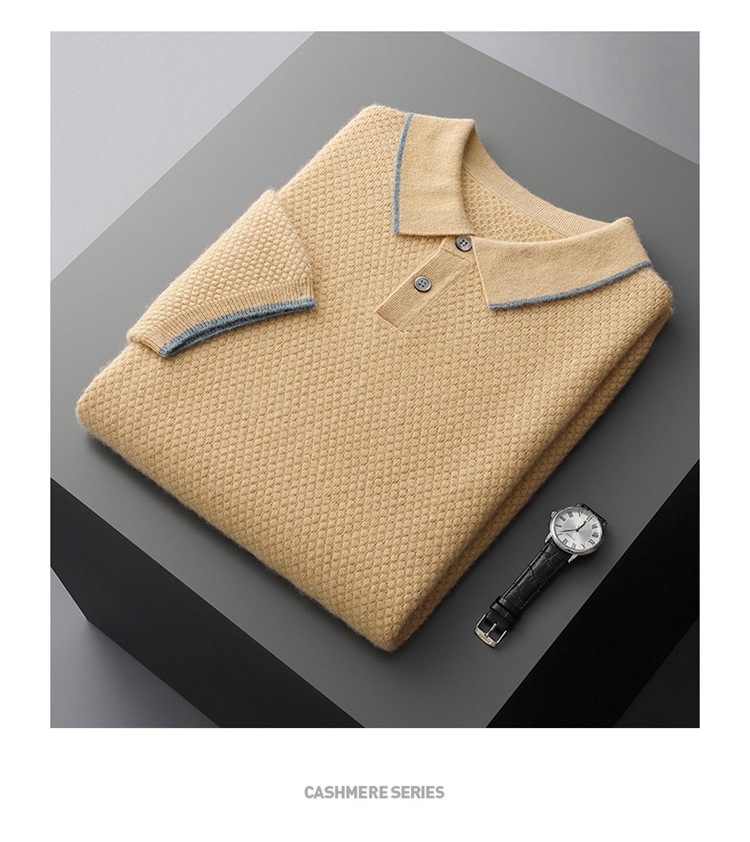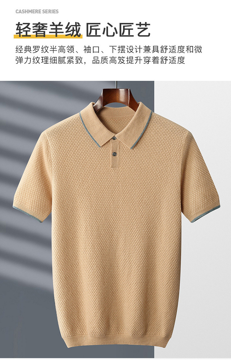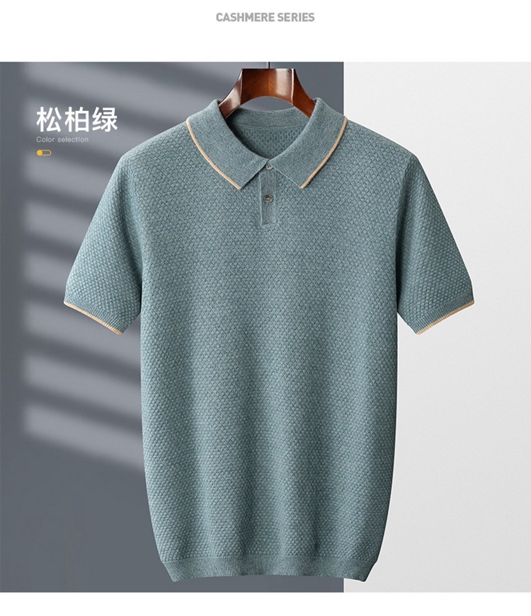 Новый стиль кашемировый свитер с короткими рукавами мужской кашемир отворот футболка трикотажный свитер бизнес повседневный полурукав рубашка POLO мужчина