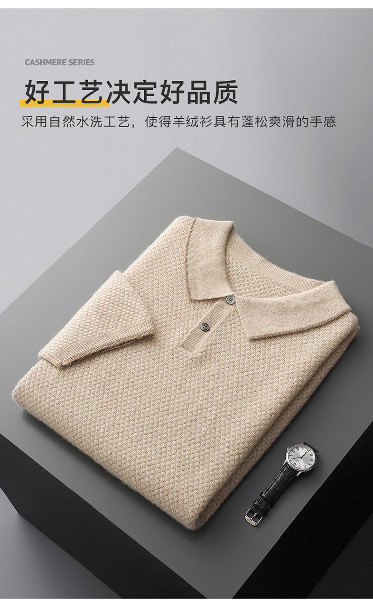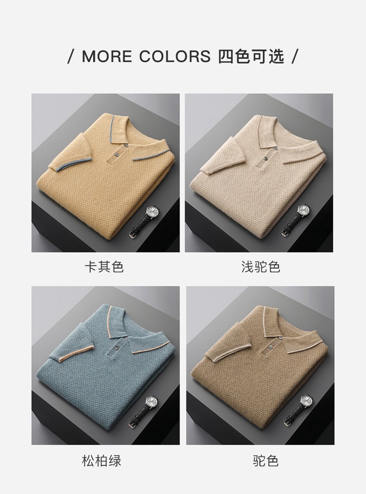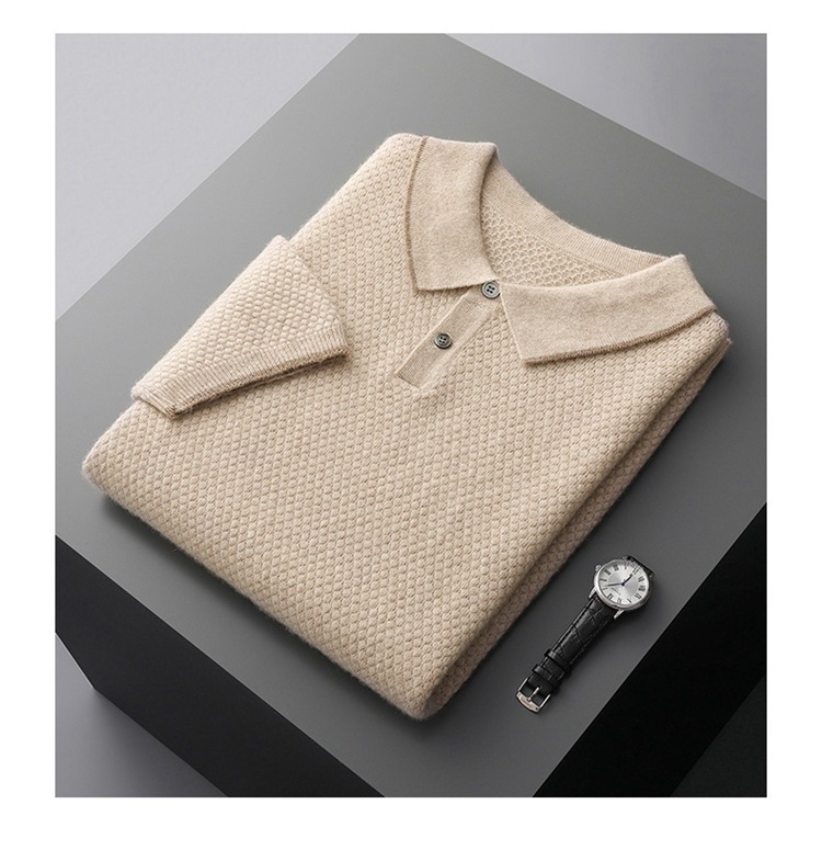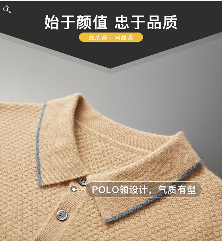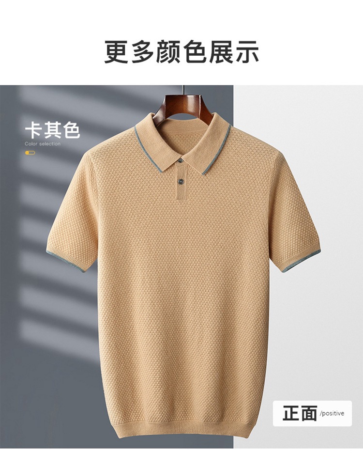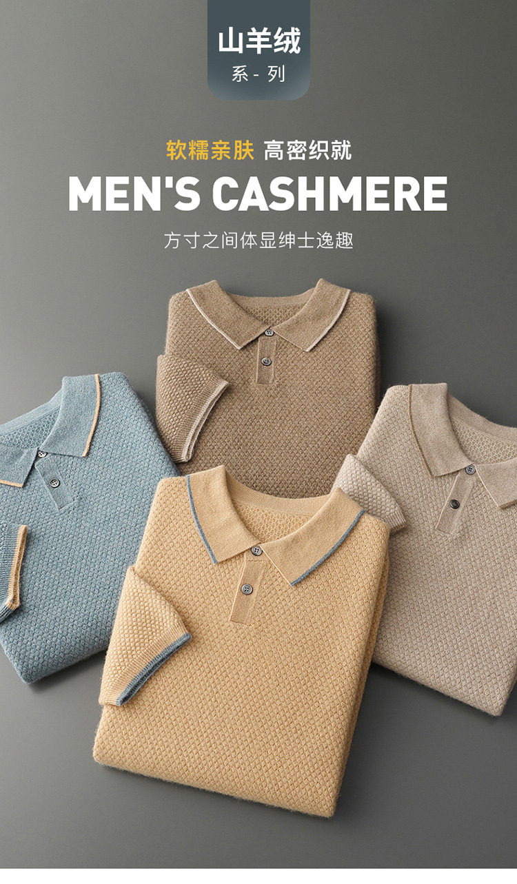 Новый стиль кашемировый свитер с короткими рукавами мужской кашемир отворот футболка трикотажный свитер бизнес повседневный полурукав рубашка POLO мужчина