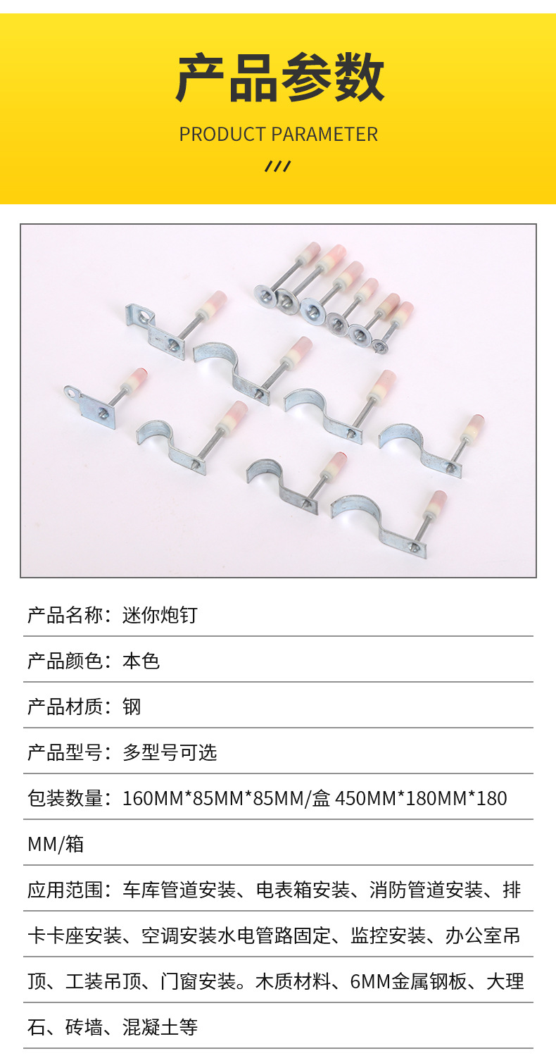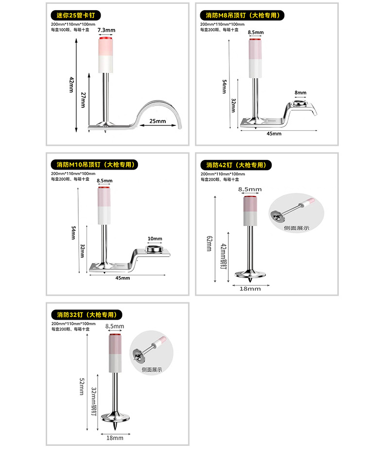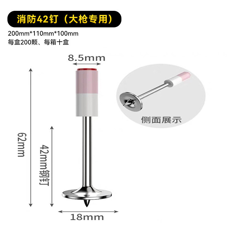 Мини 27 дисковых гвоздей; Мини 32 дисковые гвозди; Мини 42 дисковые гвозди; Мини-маленькие круглые ногти; Мини 16-трубные скобы; Мини 20-трубные скобы; Мини 25 трубчатых скоб; Потолочный гвоздь Fire H8 (только для больших оружия); Потолочный гвоздь Fire H10 (только для больших оружия); Гвозди Fire 42 (только для больших пистолетов); Гвозди Fire 32 (только для больших пистолетов)