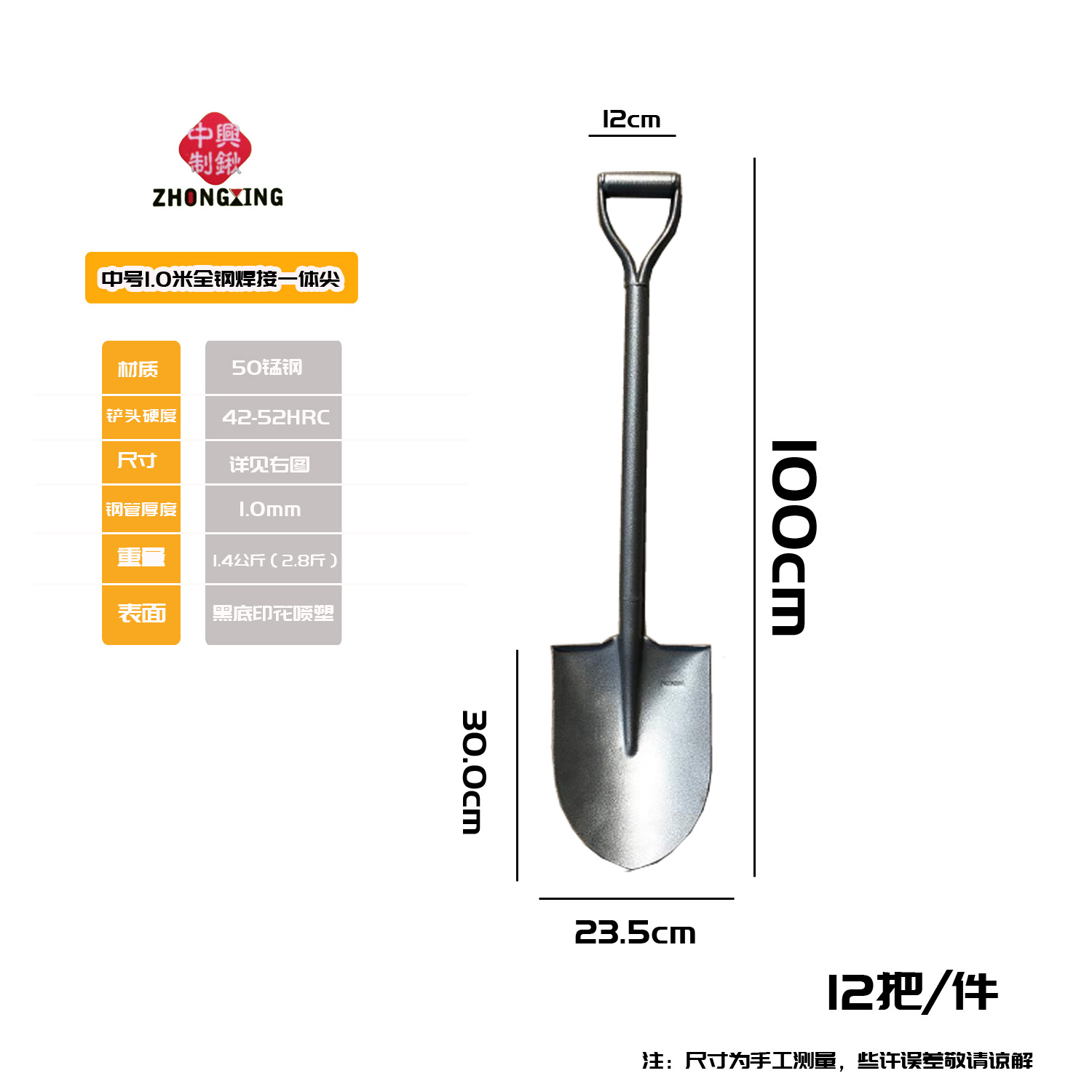Встроенная полная лопата, утолщенная лопата для сельскохозяйственного домашнего сада, цельная интегрированная лопата из марганцевой стали, закалка