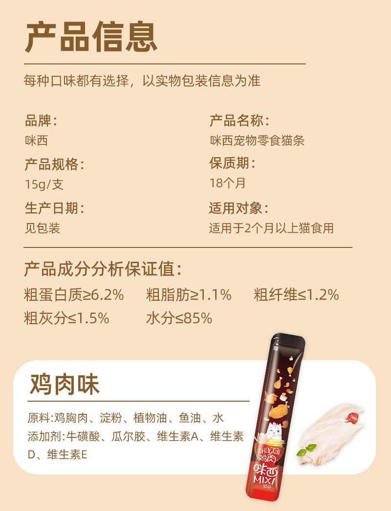 Misi Pet Snacks корм для кошек куриные полоски для кошек влажный корм свежее мясо кошачий рис пакет 15 г тунец лосось оптом