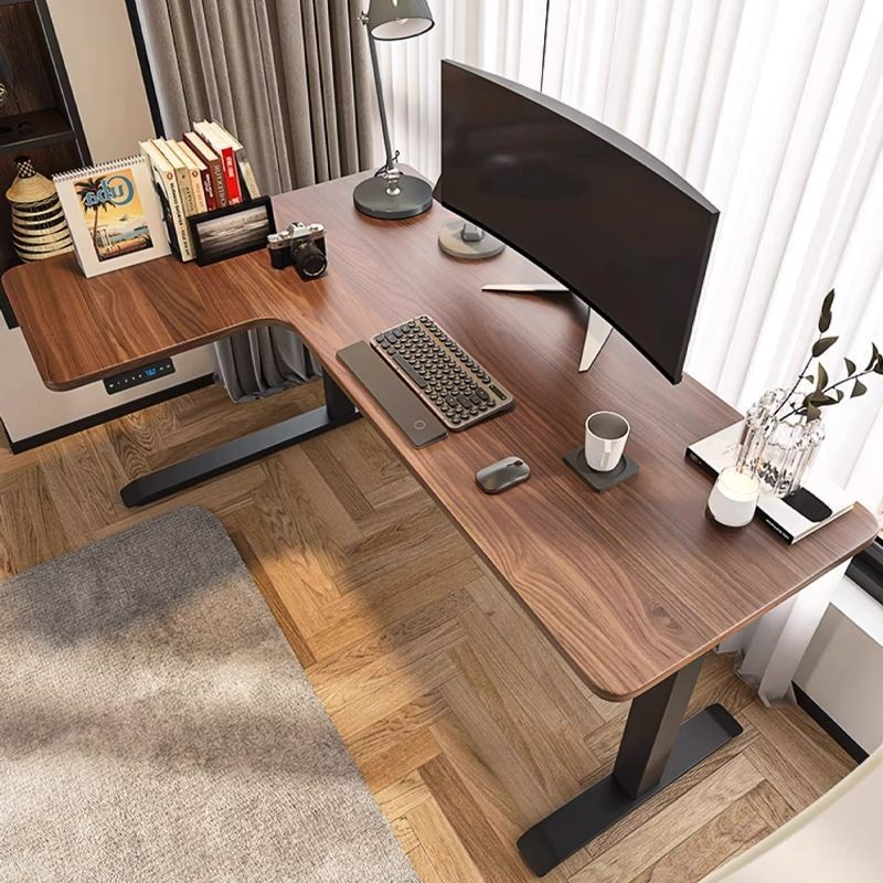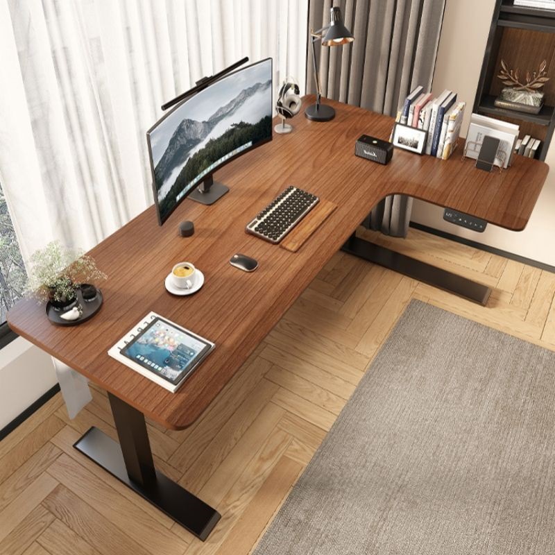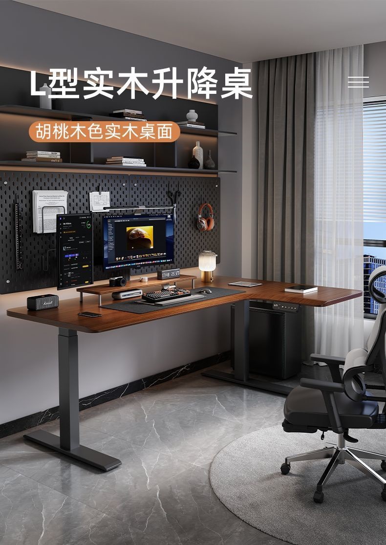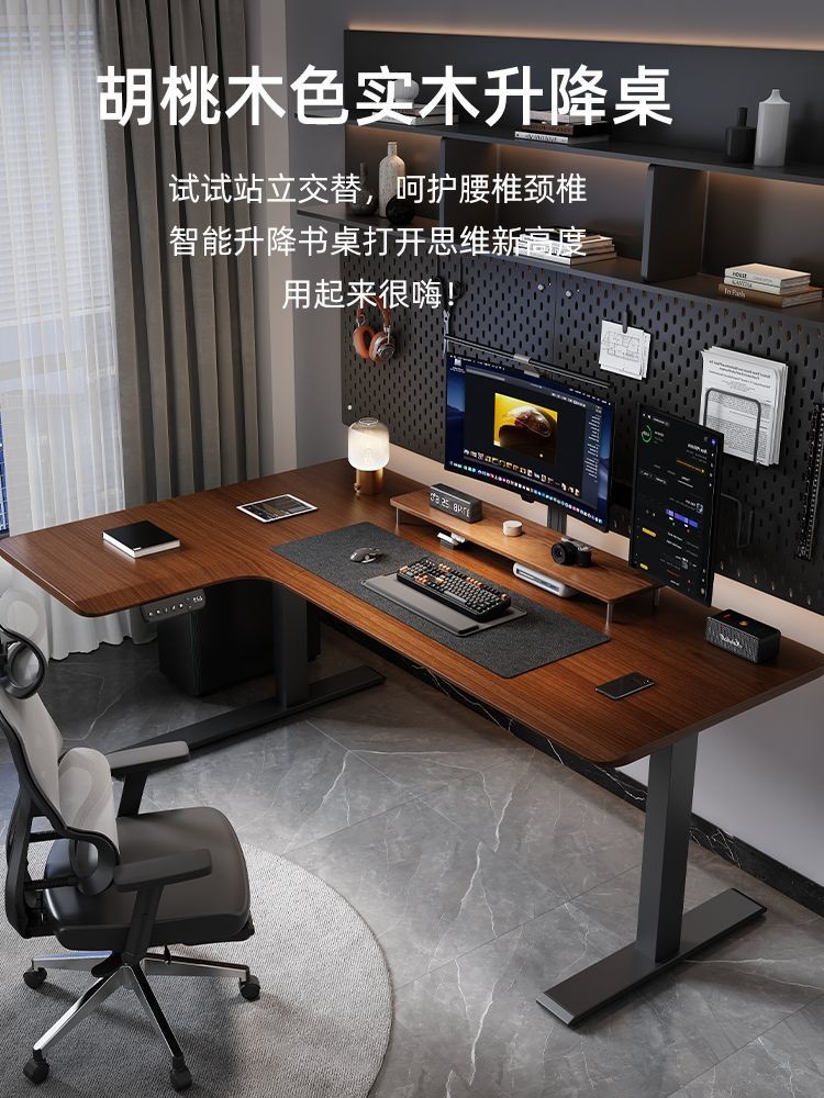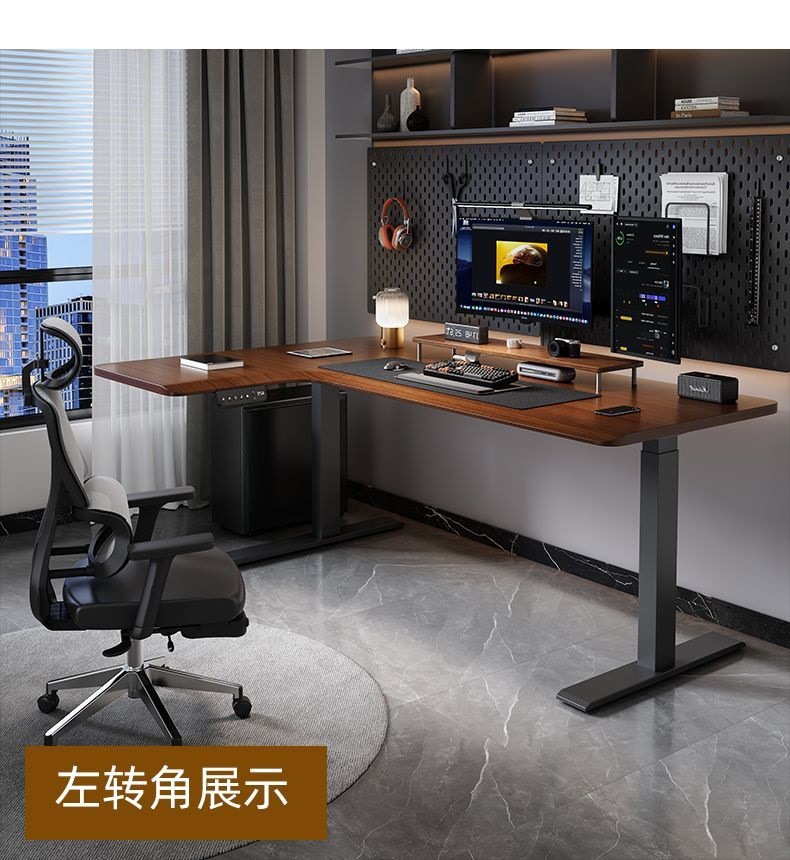 Черный орех дерево электрический подъемный угловой стол lL тип массивной древесины интеллектуальная регулировка компьютерный стол угловой киберспорт стол