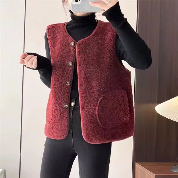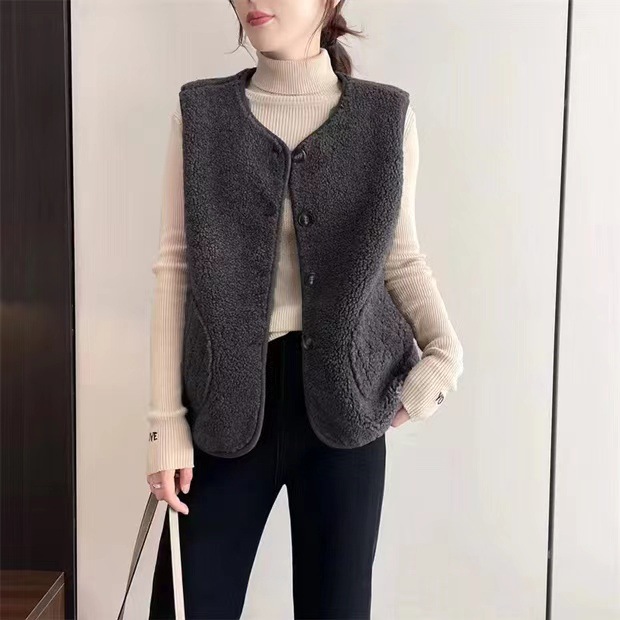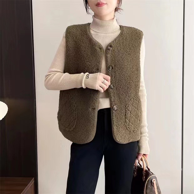 2024 осень и зима новая литературная свободная повседневная дикая меховая жилет без рукавов