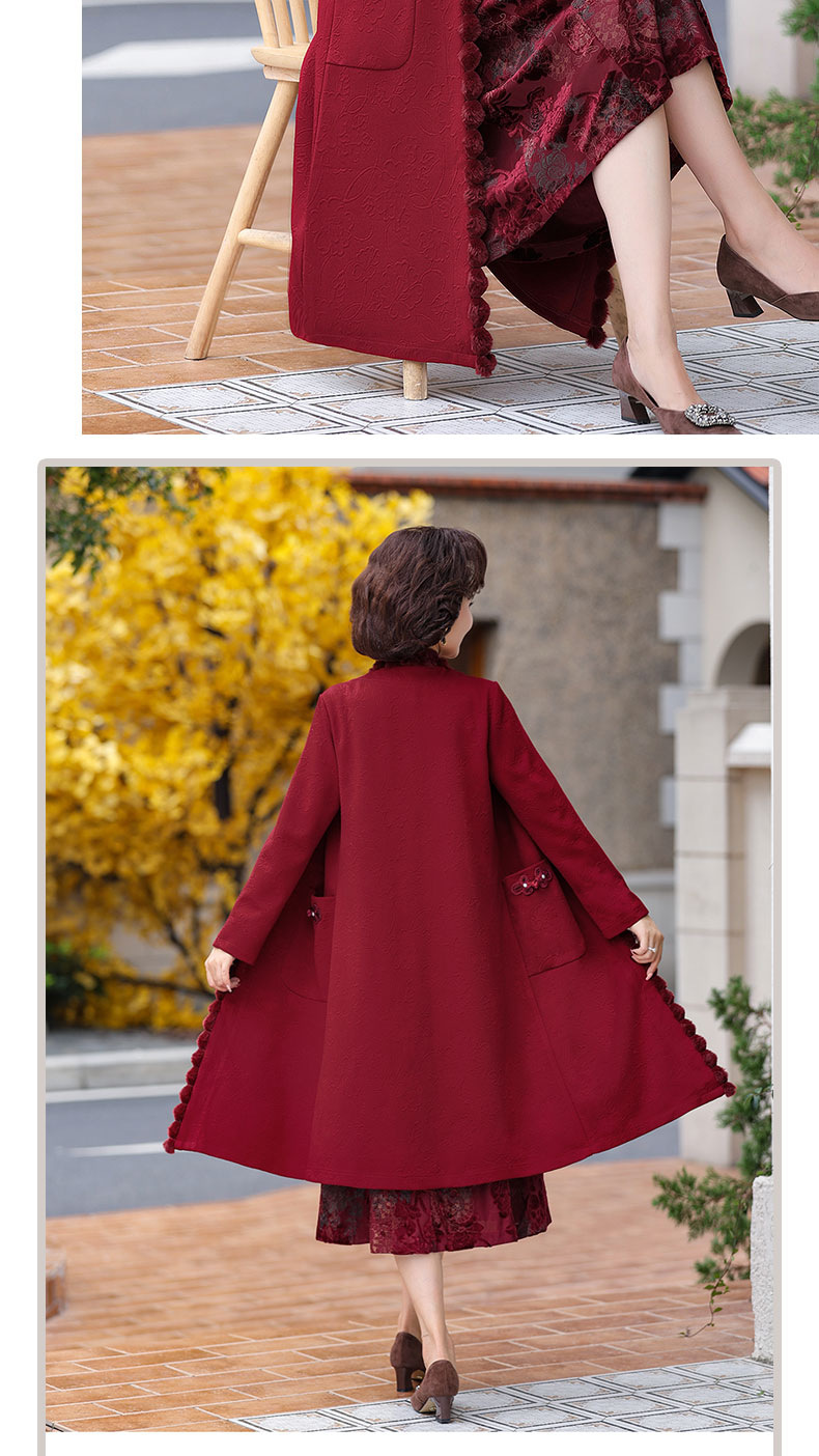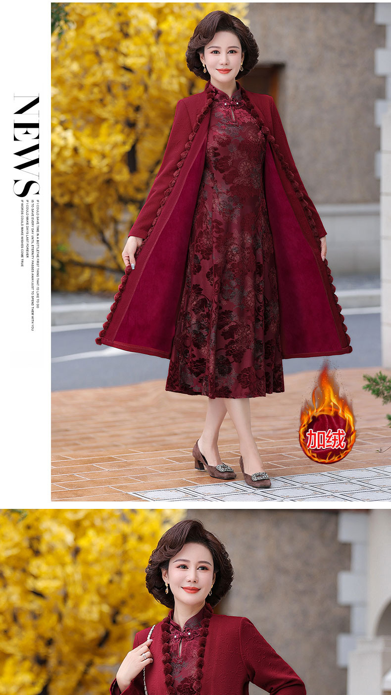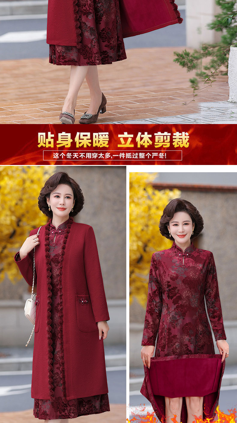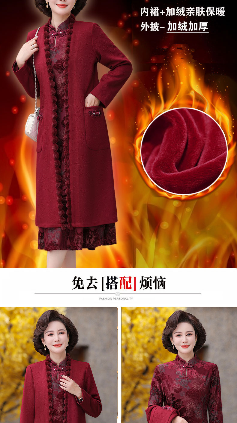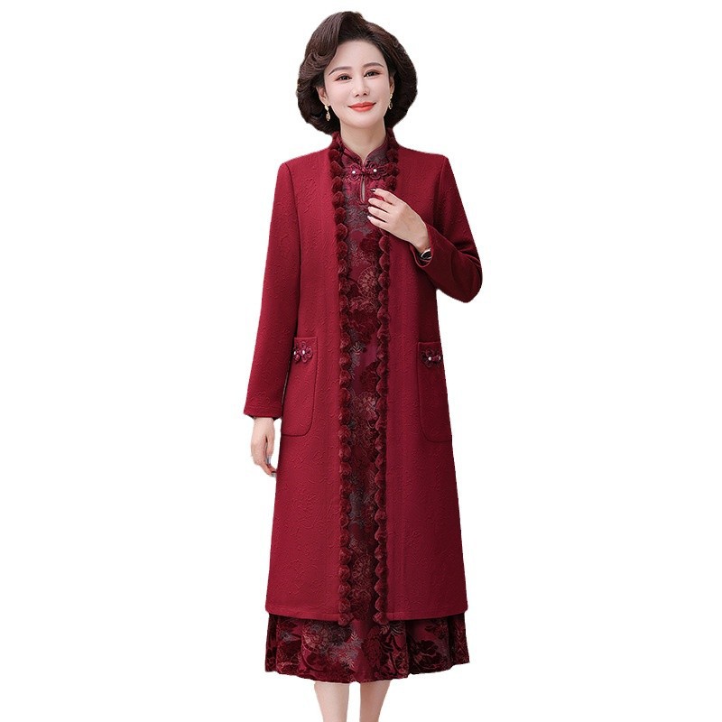 Мамочка красное платье с плюшевым толстым плащом пальто пальто платье новая теща свадебная юбка