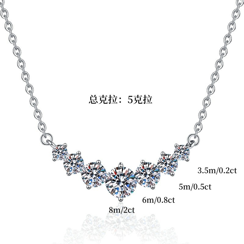 Ожерелье из муассанита для женщин, семь подвесок в стиле принцесс, легкая роскошь, универсальные модные украшения оптом, трансграничная торговля, цепочка на ключицы из стерлингового серебра S925