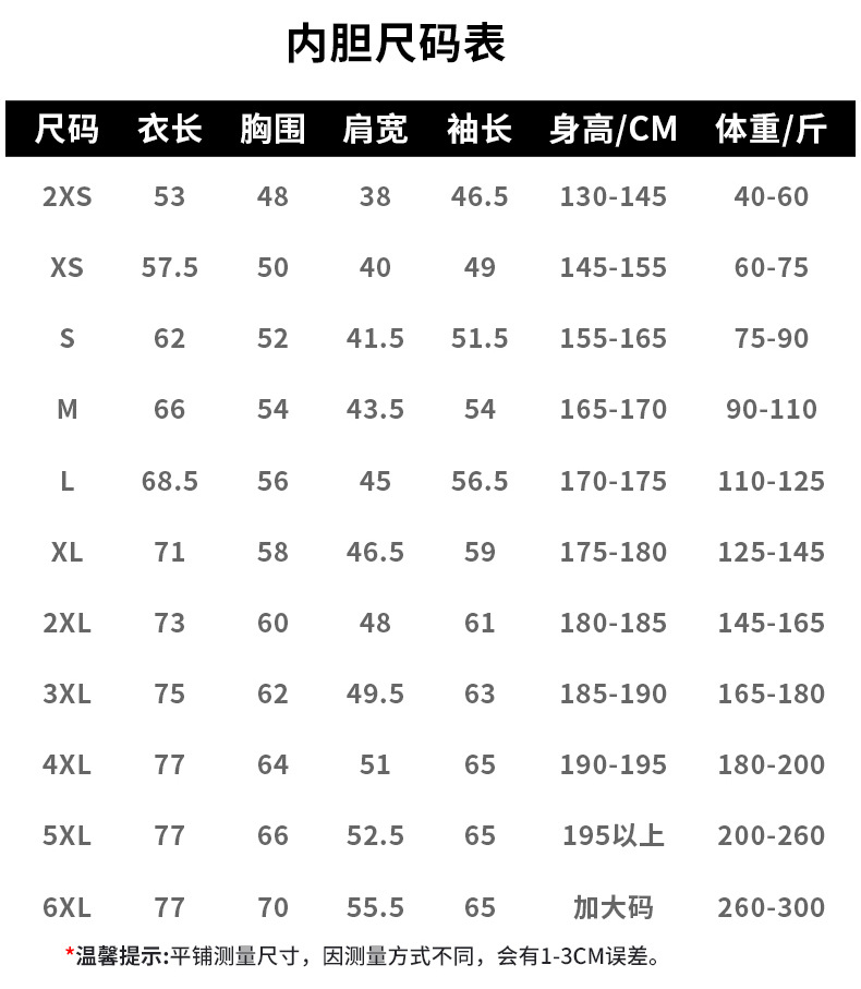 XXS; XS; S; M; L; XL; XXL; XXXL; 4XL; 5XL; 6XL