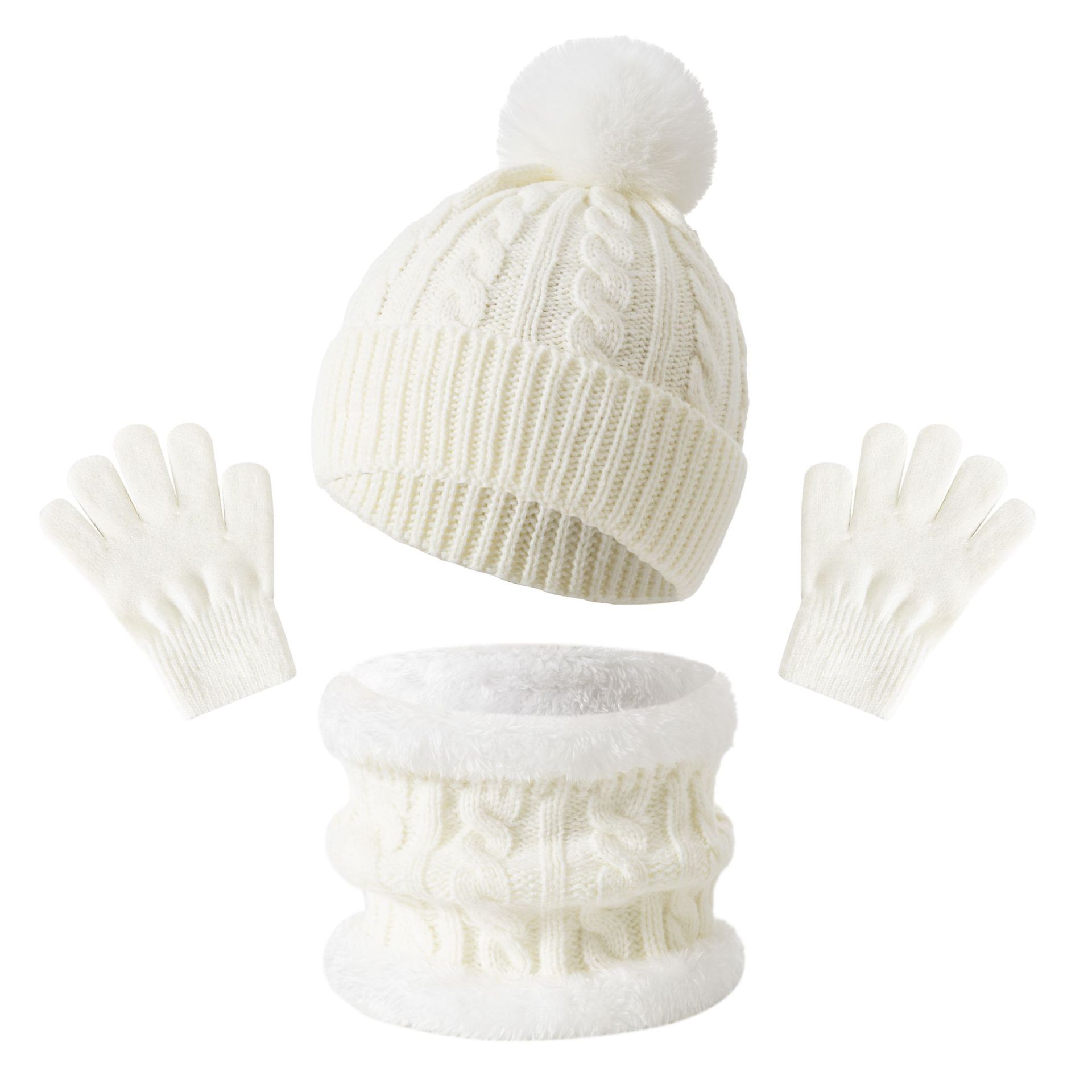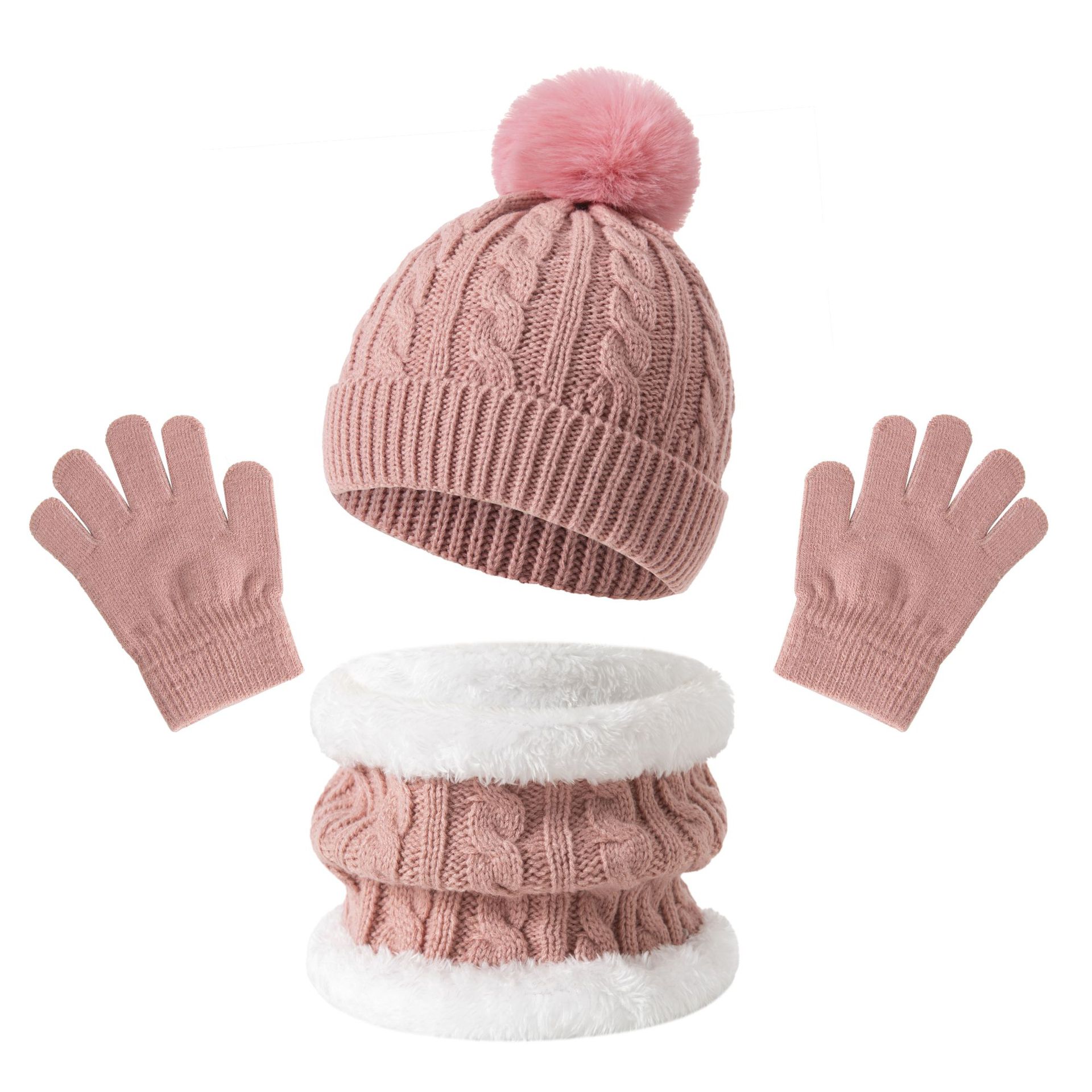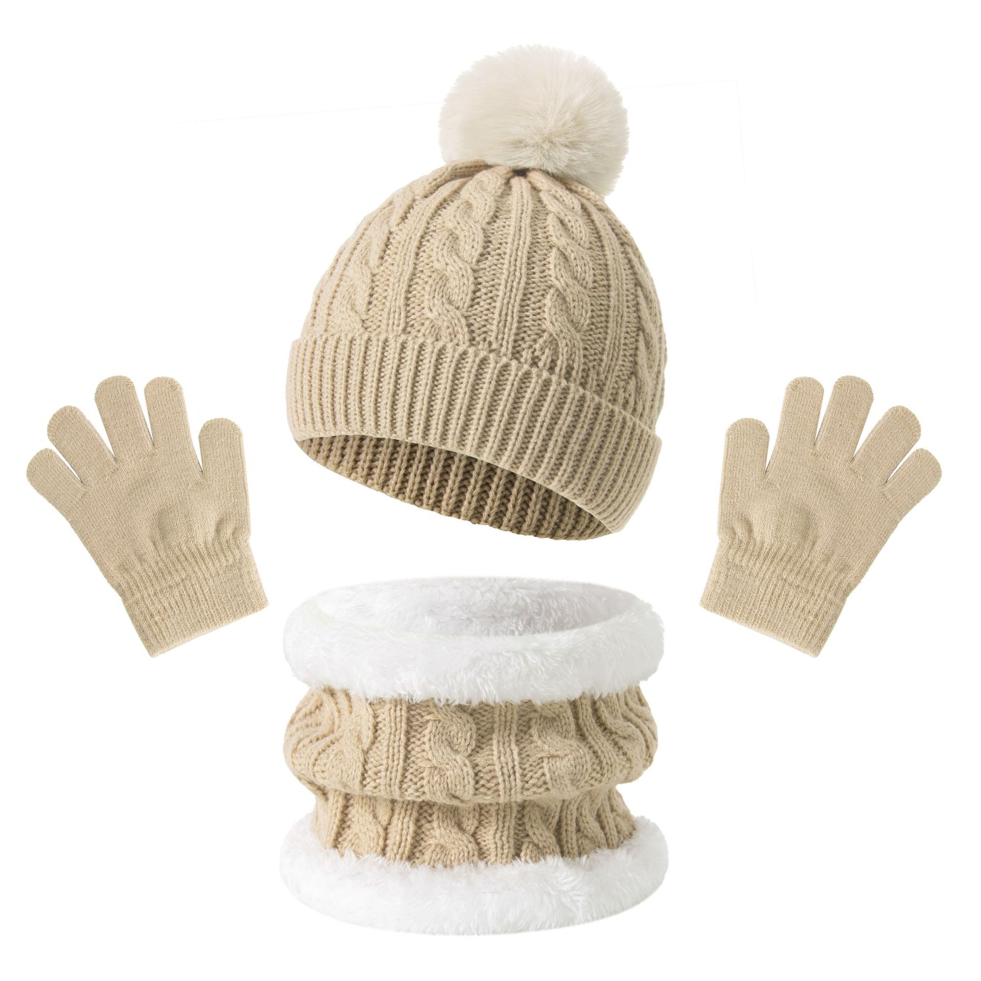 Новый трансграничный детский теплый вязаный шерстяной шерстяной плюс плюшевый толстый зимний шапка шарф перчатки из трех частей