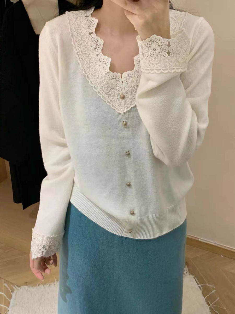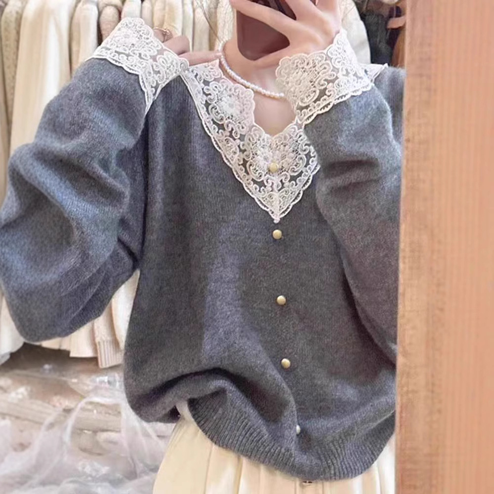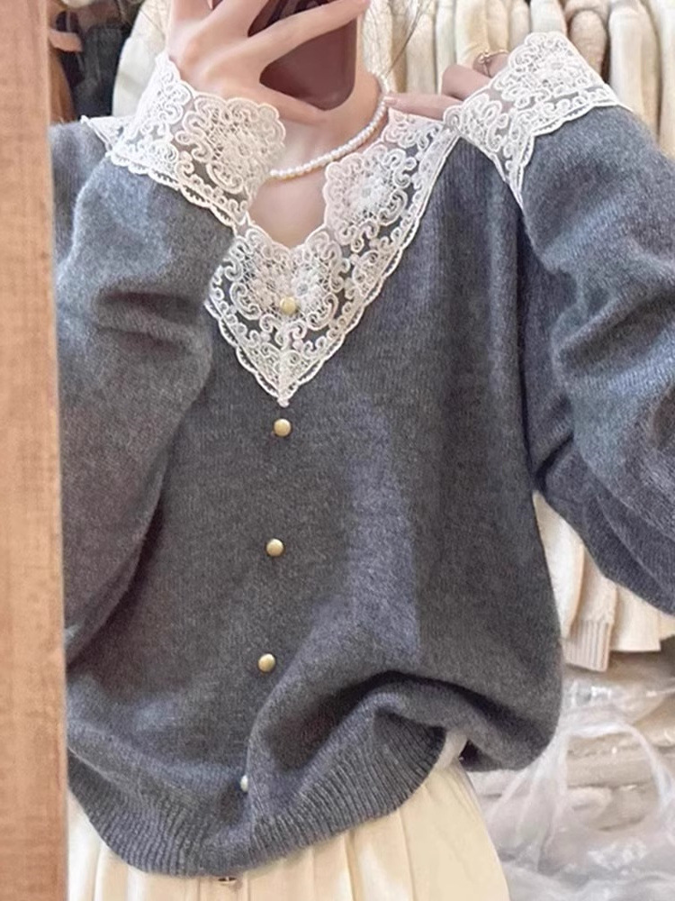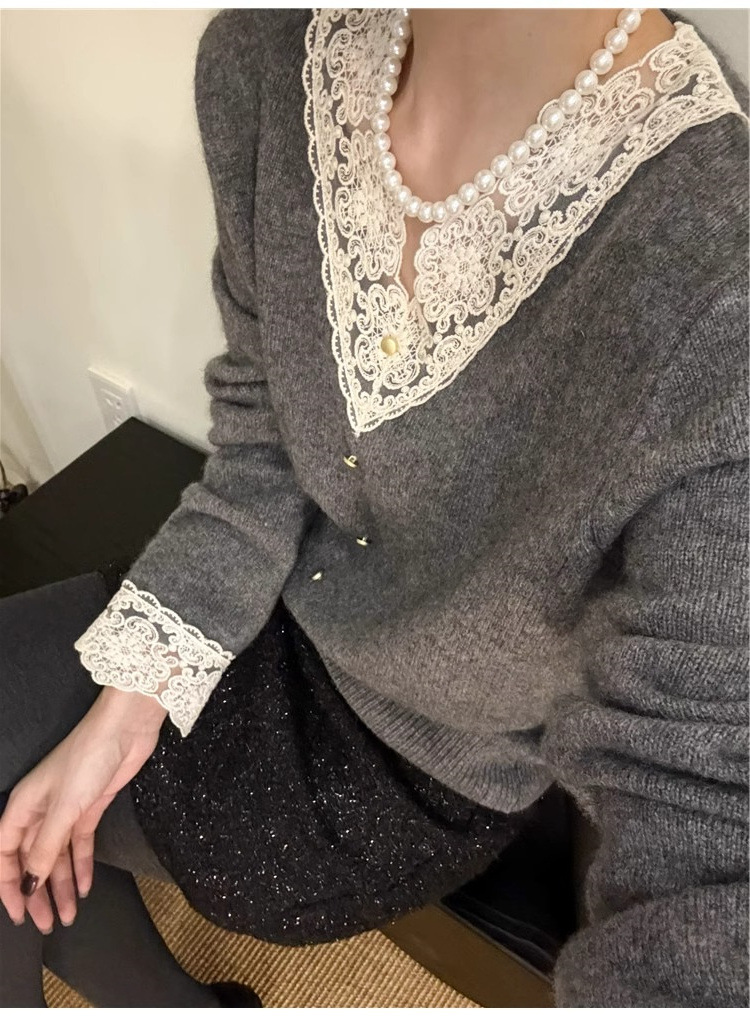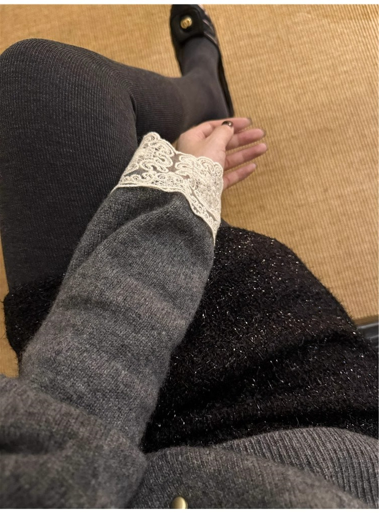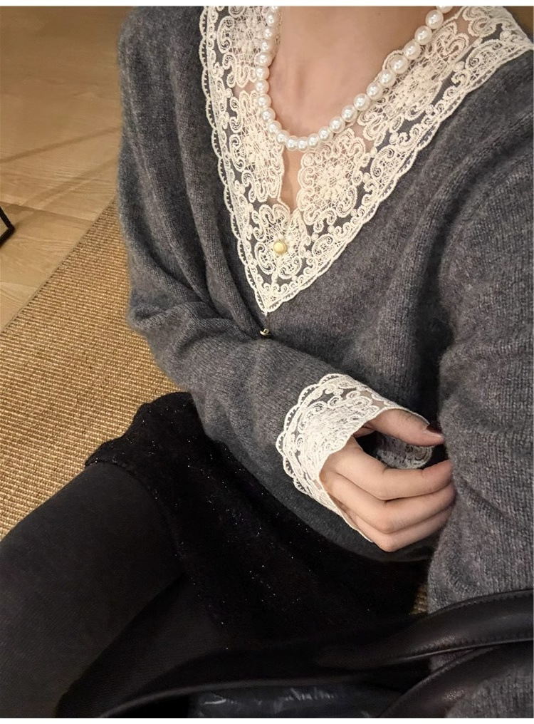 125kg Элегантный женский свитер большого размера с кружевными вставками, вязаный, осенне-зимний, с длинными рукавами, закрывающий фигуру.