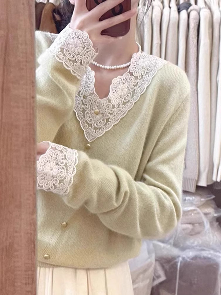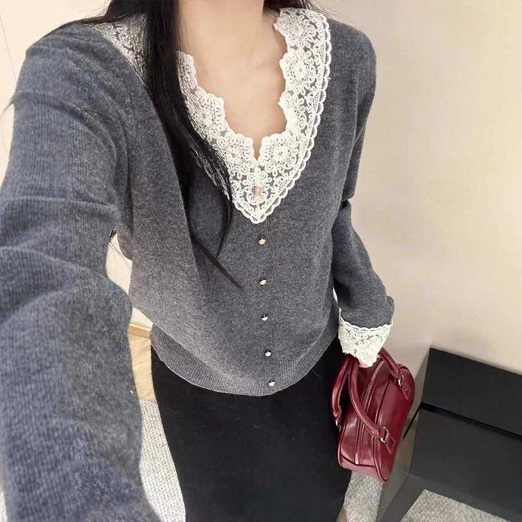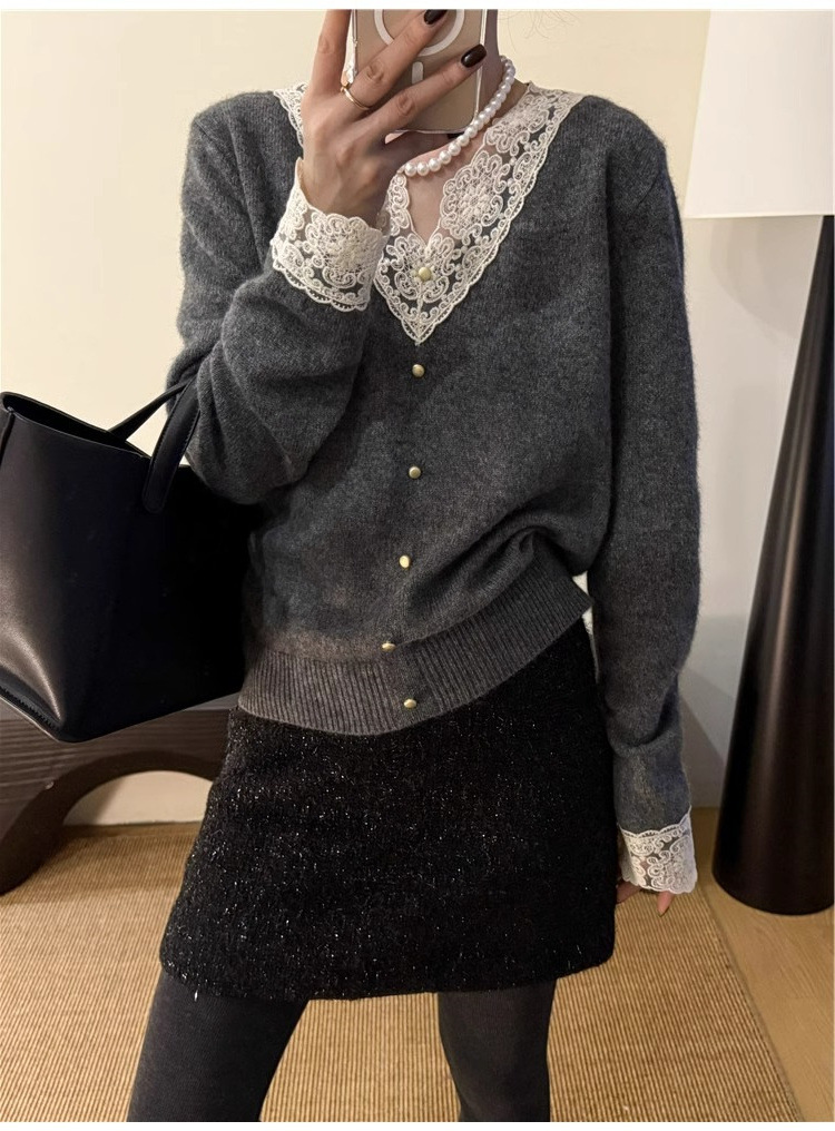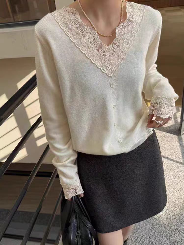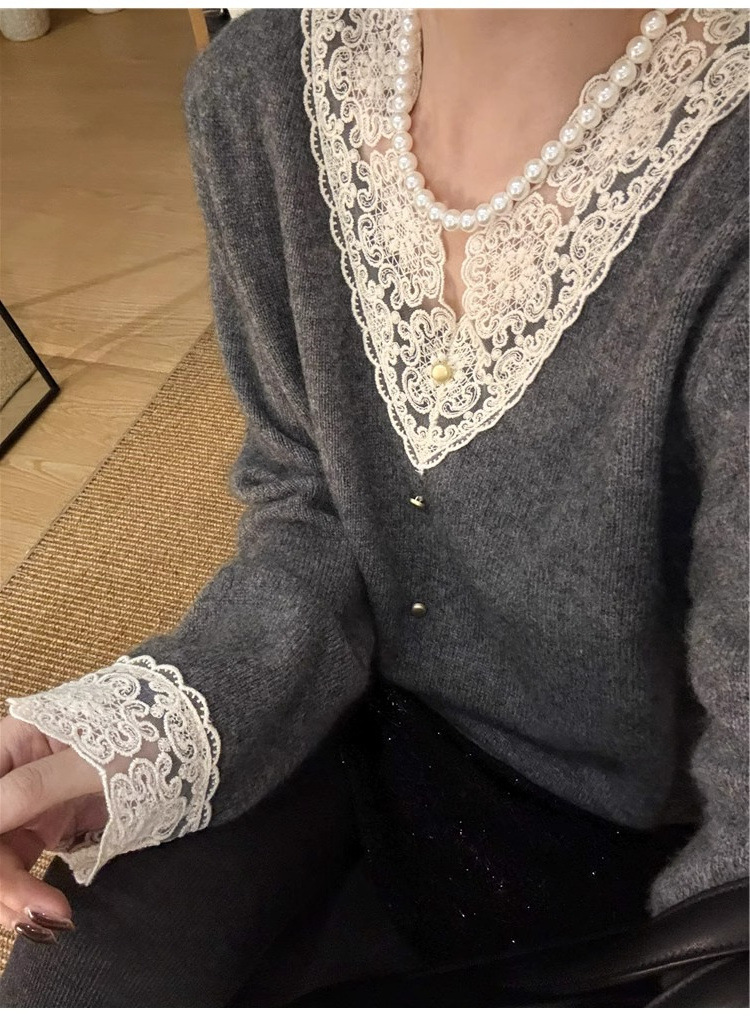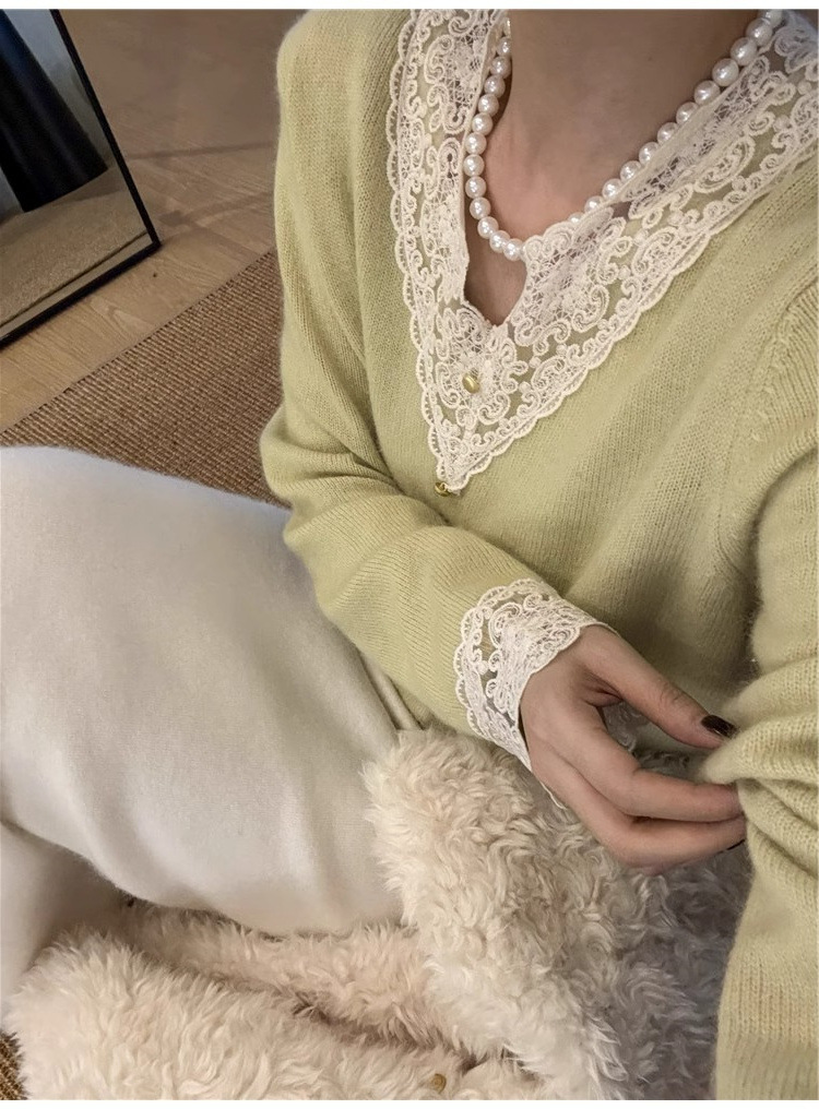 125kg Элегантный женский свитер большого размера с кружевными вставками, вязаный, осенне-зимний, с длинными рукавами, закрывающий фигуру.