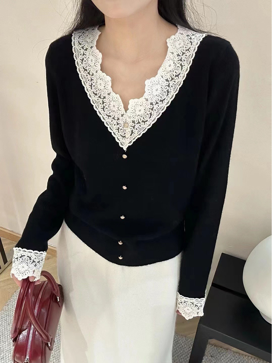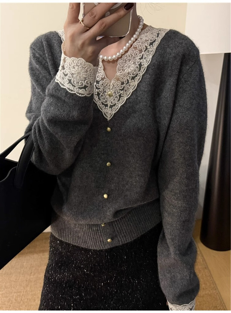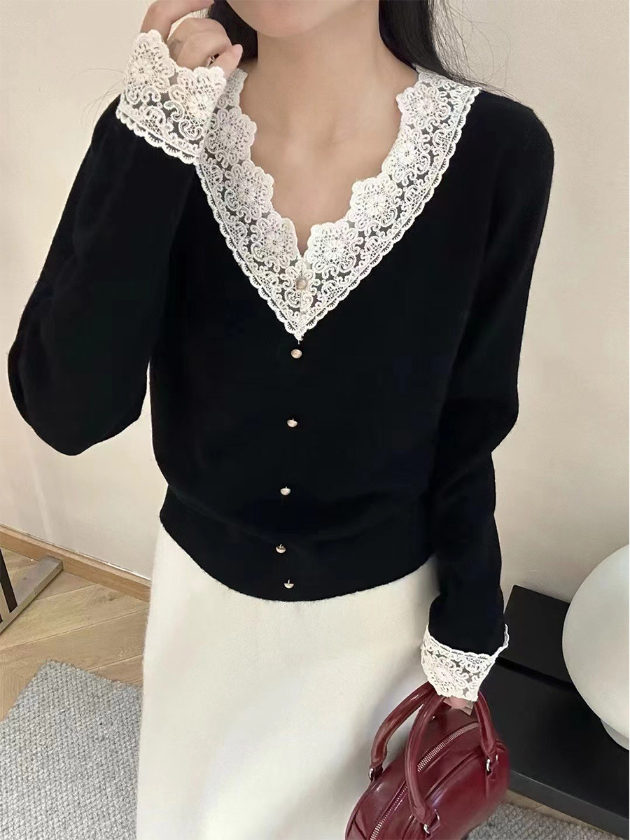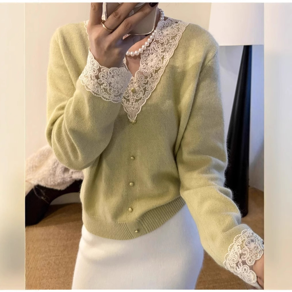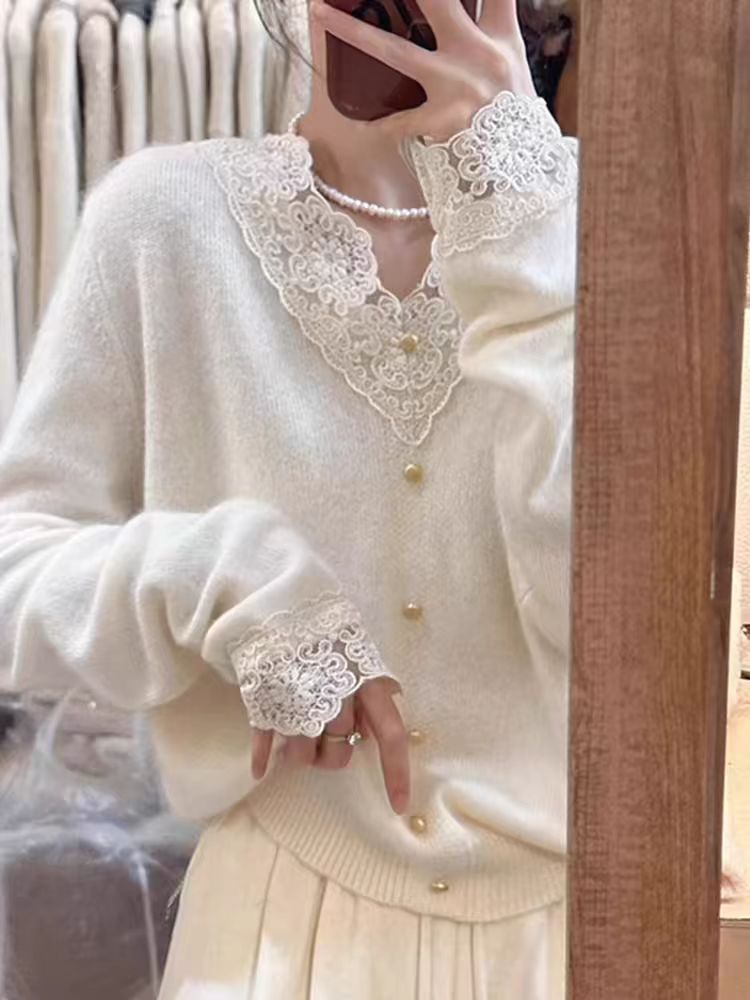 125kg Элегантный женский свитер большого размера с кружевными вставками, вязаный, осенне-зимний, с длинными рукавами, закрывающий фигуру.