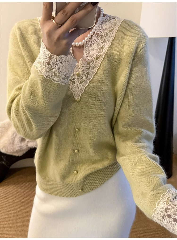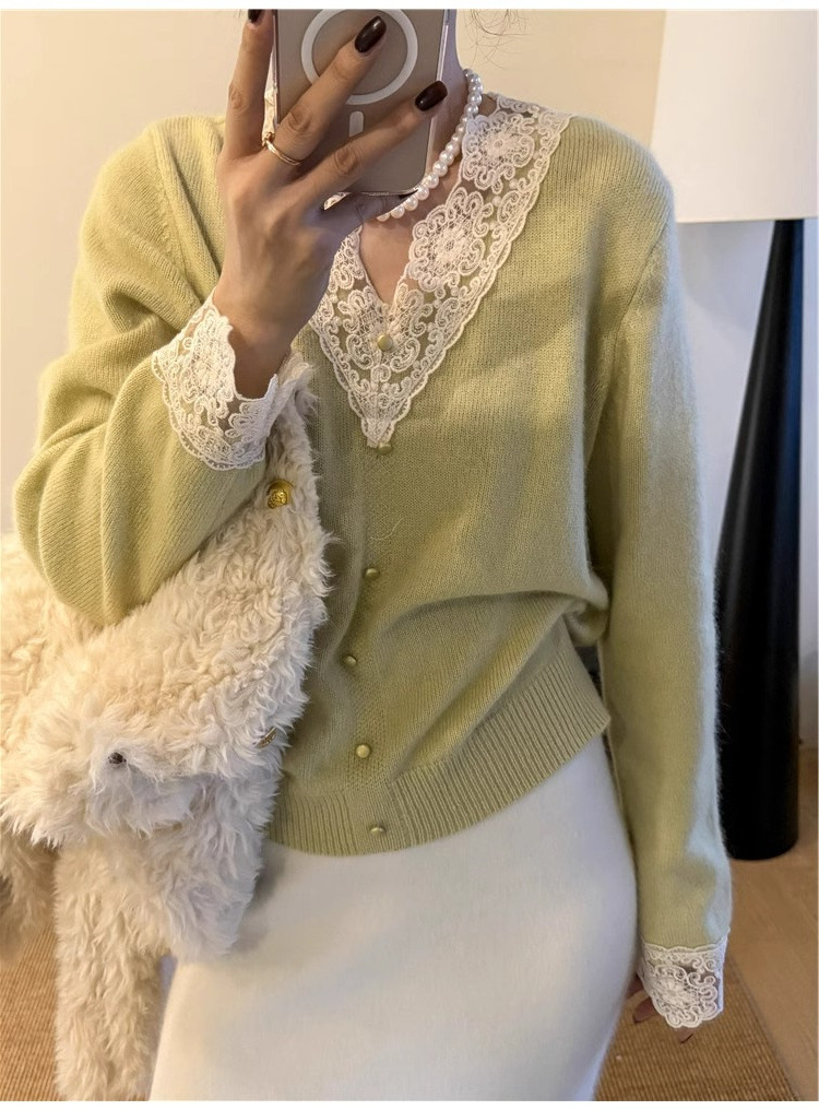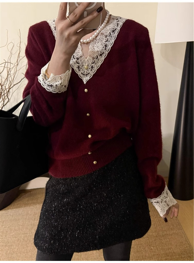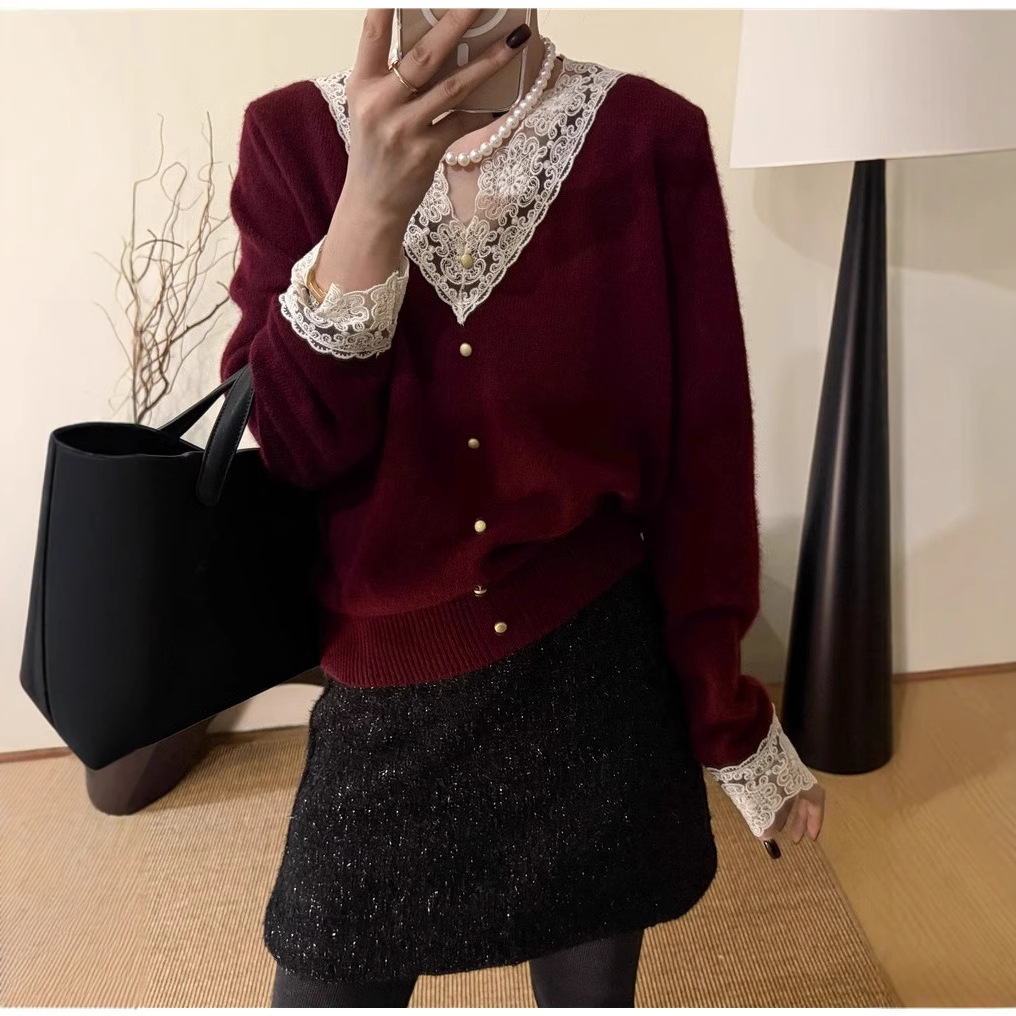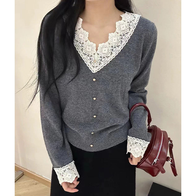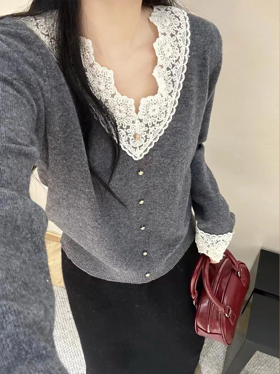 125kg Элегантный женский свитер большого размера с кружевными вставками, вязаный, осенне-зимний, с длинными рукавами, закрывающий фигуру.