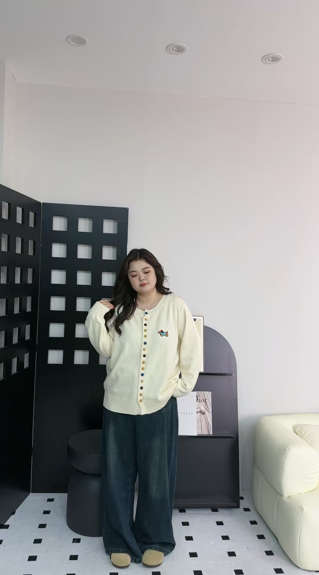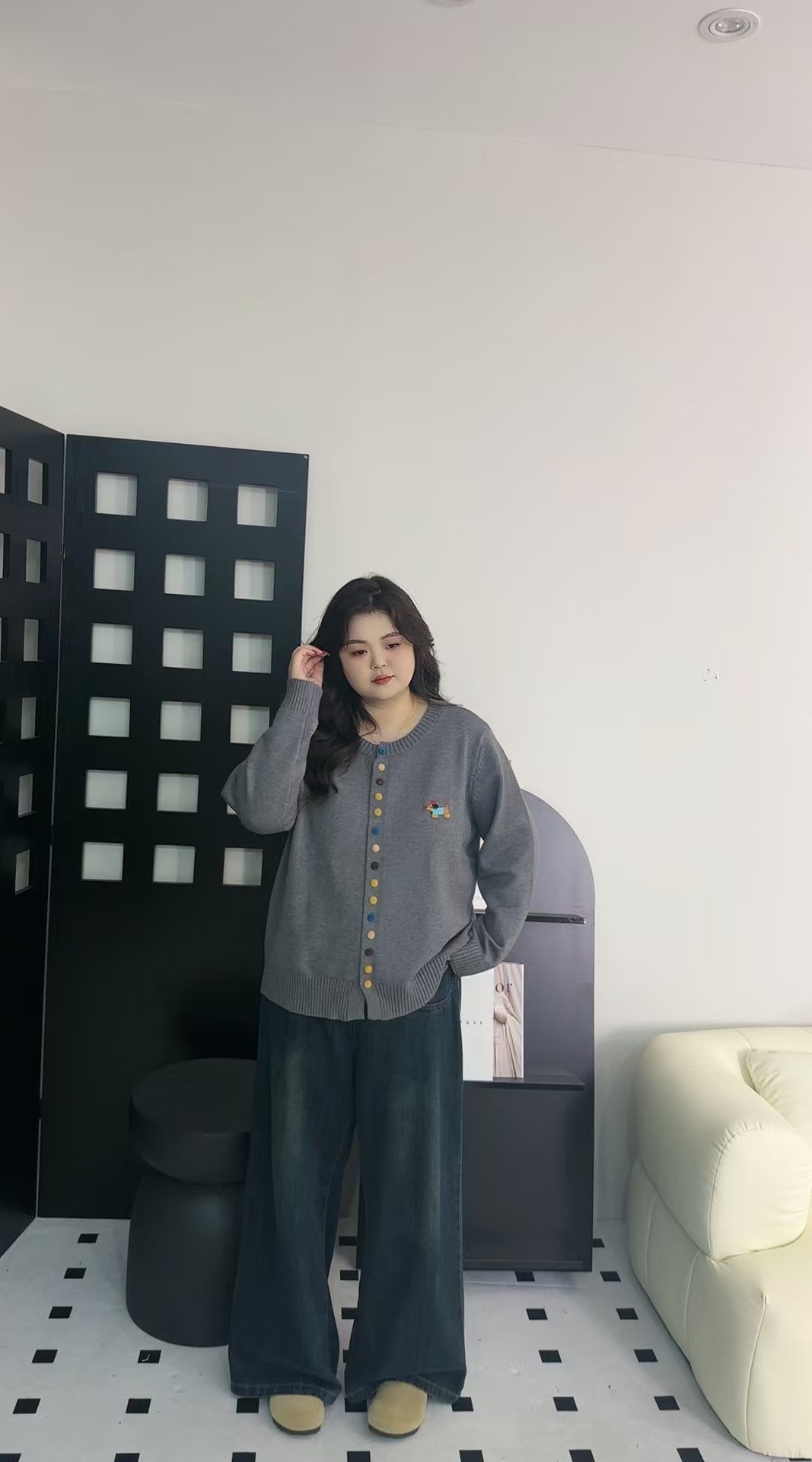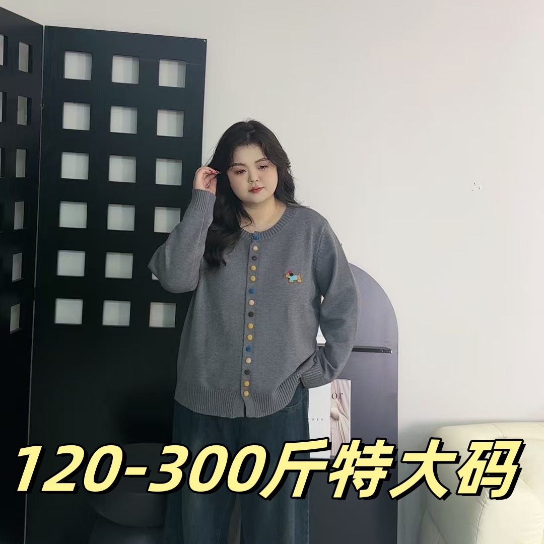 100kg женская одежда больших размеров с нашивкой в виде щенка, дизайн вышивки 2025, осень и зима, европейский однобортный кардиган с круглым вырезом, уменьшающий возраст, модный стиль
