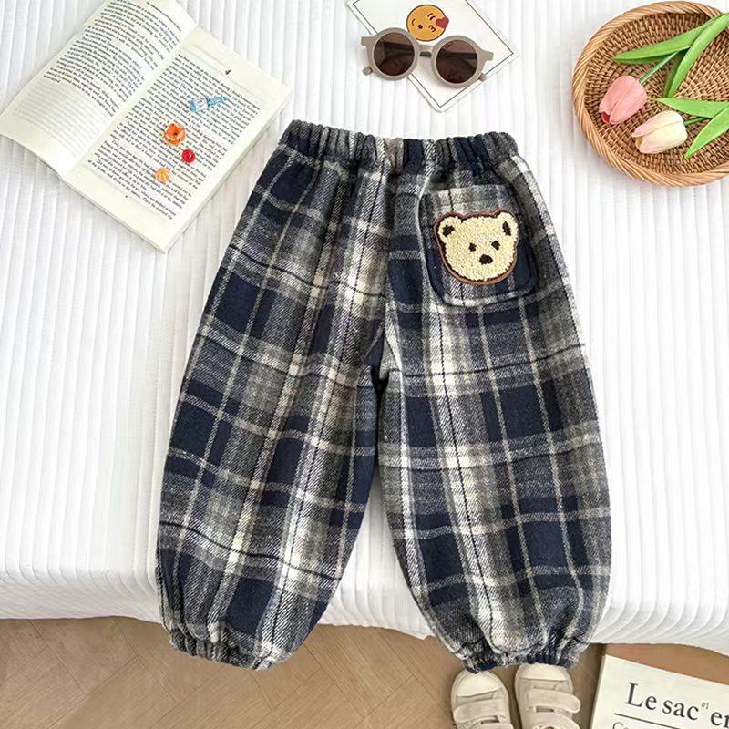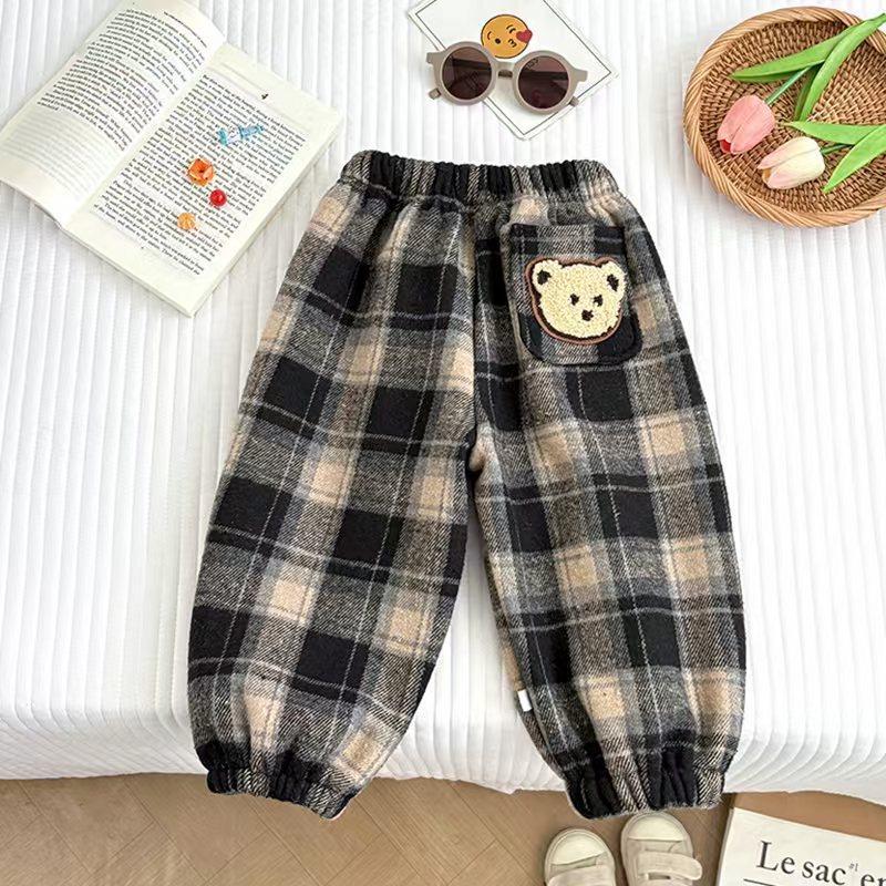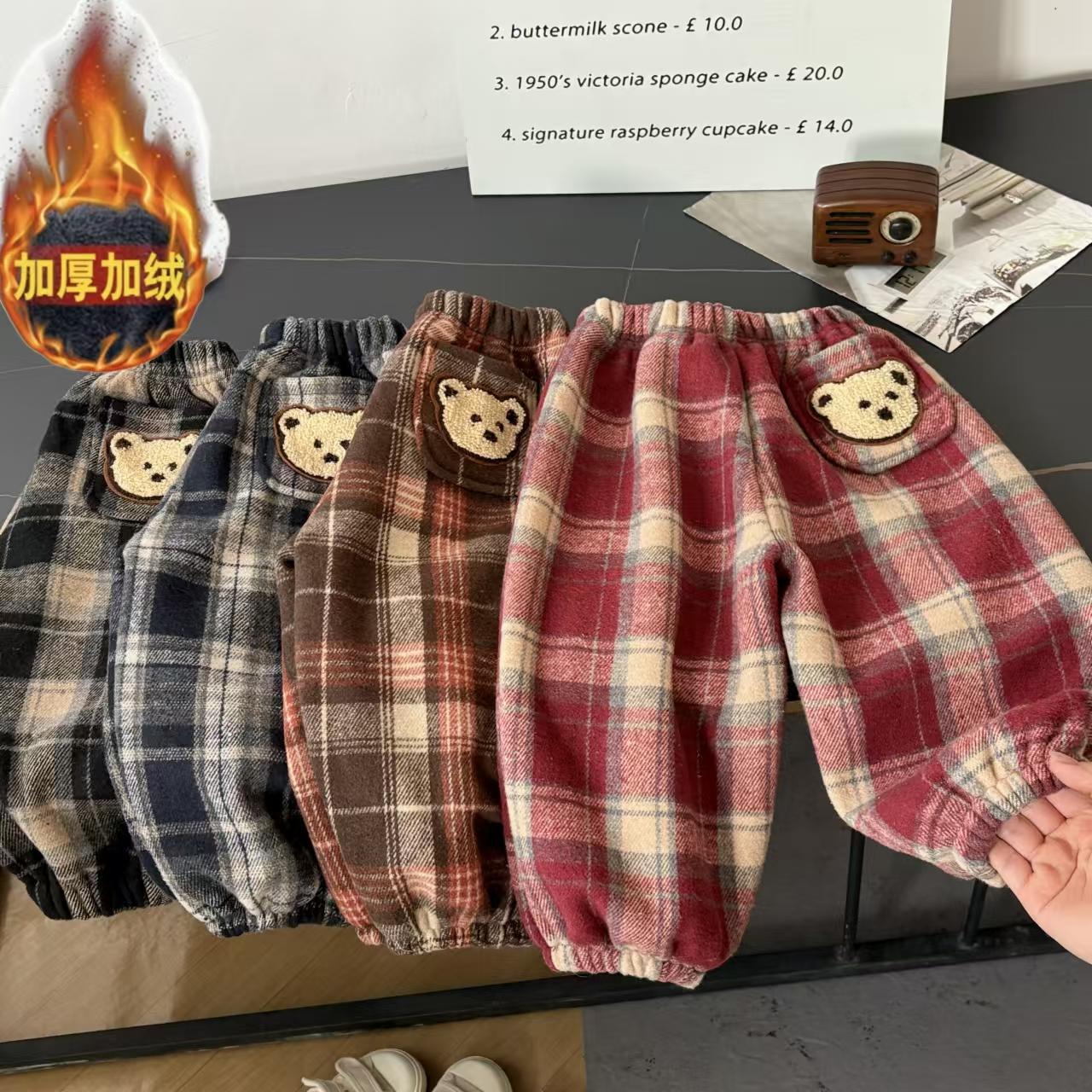 [Сокровище гардероба] Новые бархатные детские детские брюки теплые бархатные повседневные брюки в клетку