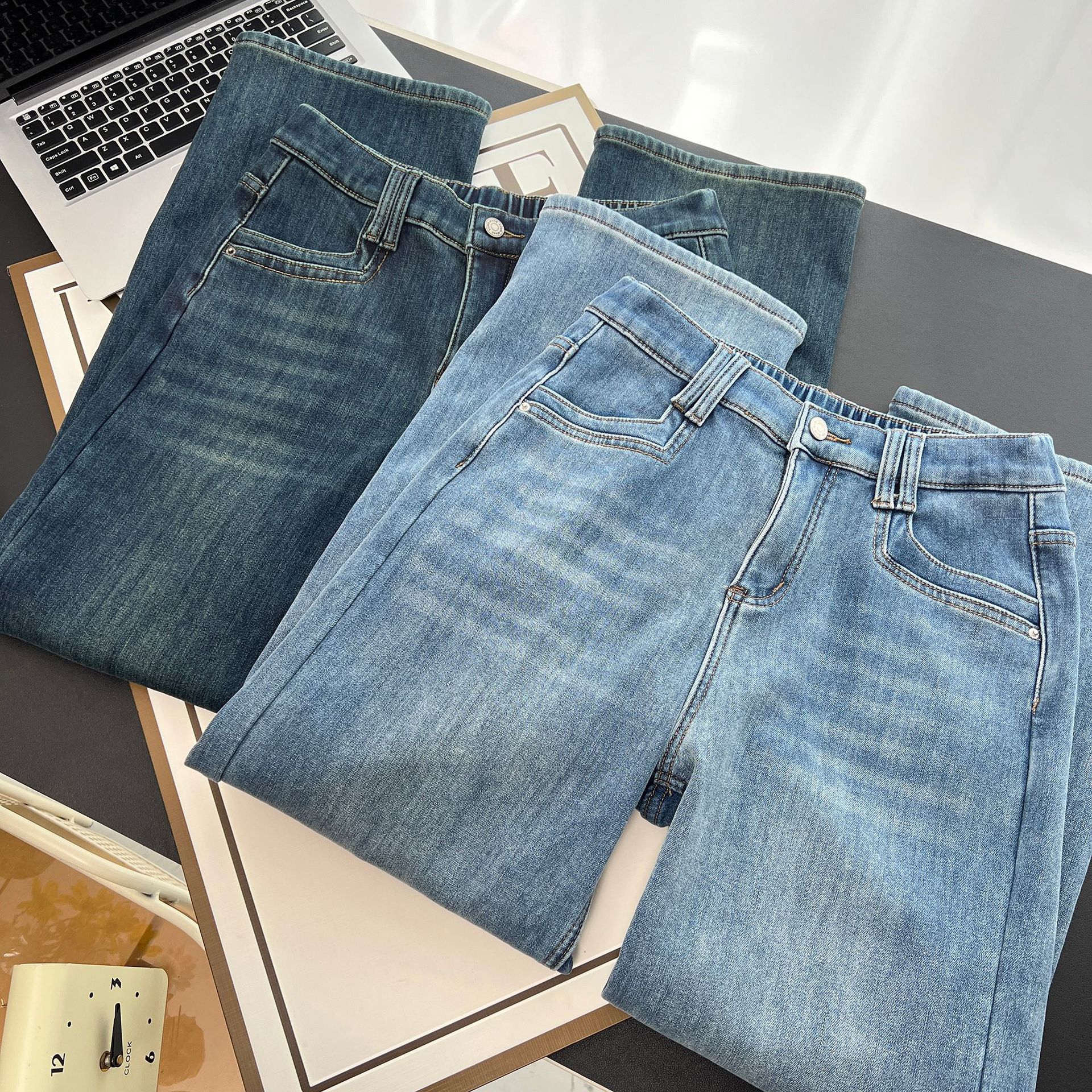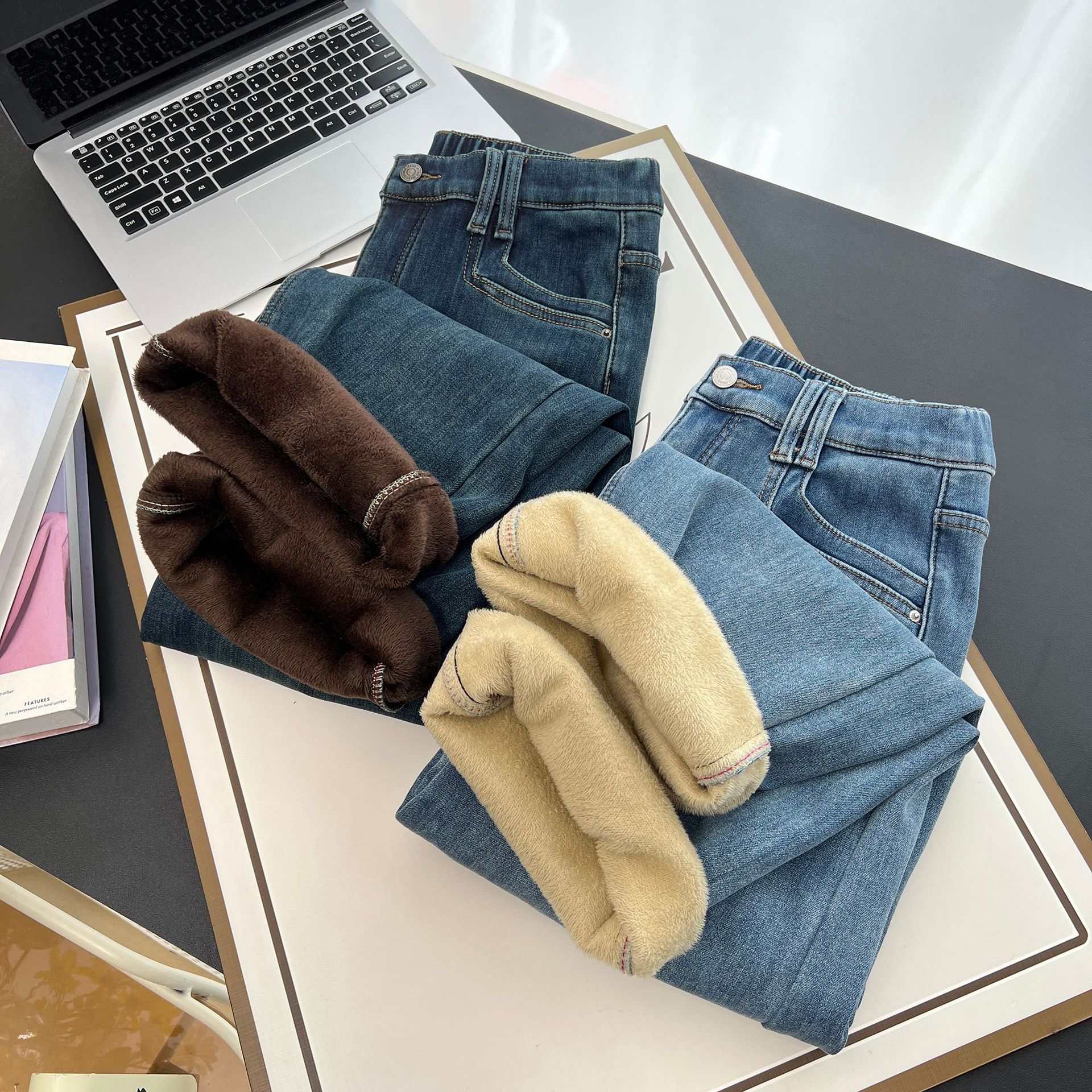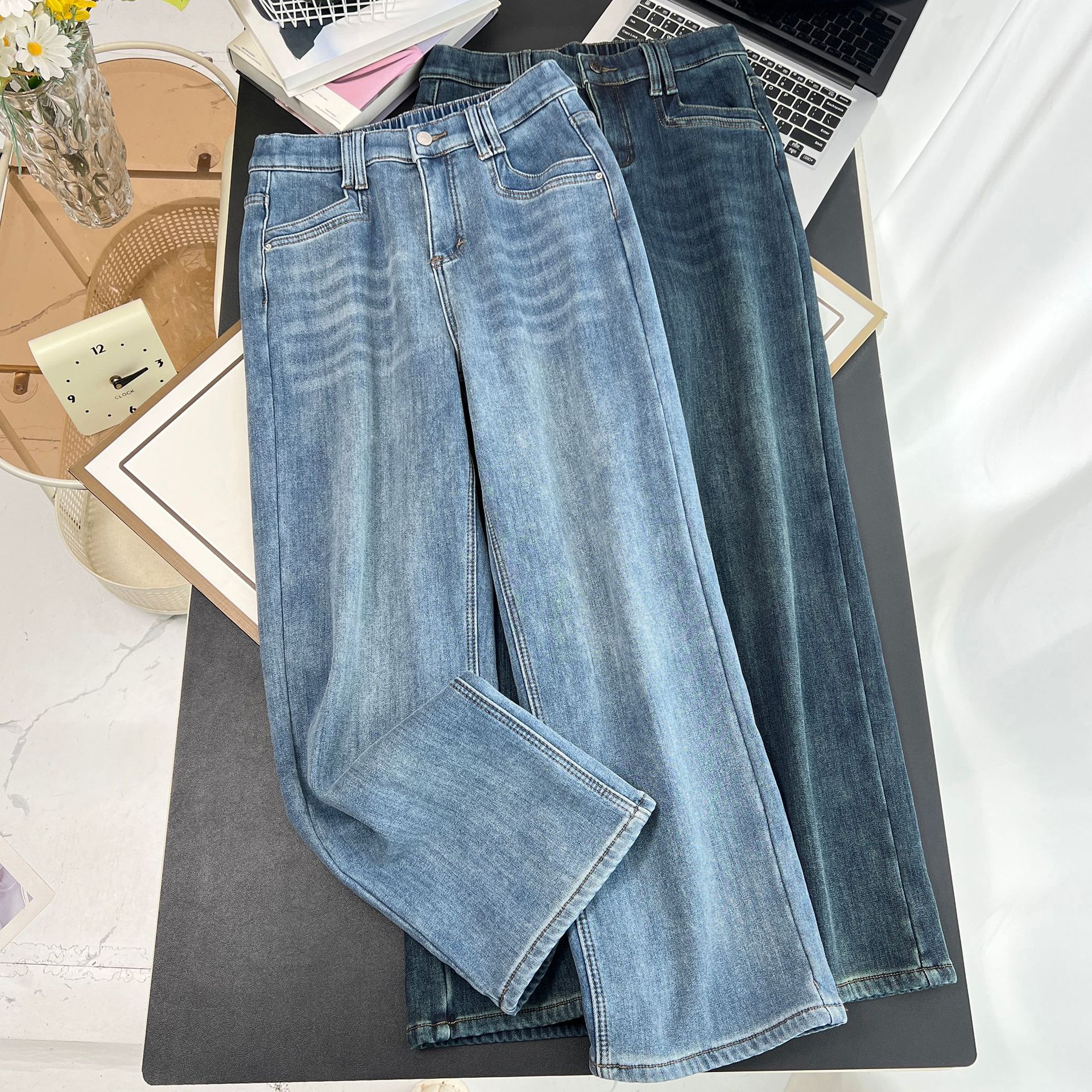 2024 Зима 200 кг толстая сестра мода тонкая и бархатная джинсовые прямые брюки большие размеры женские штаны для мытье пола 5790