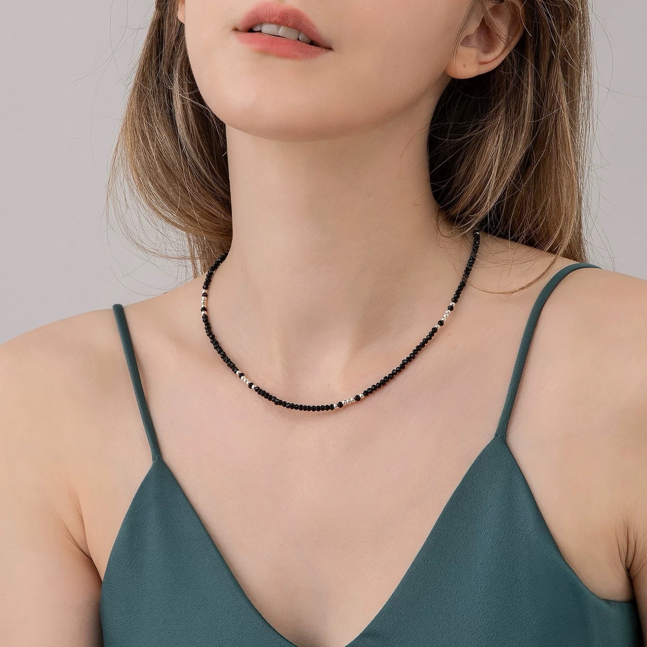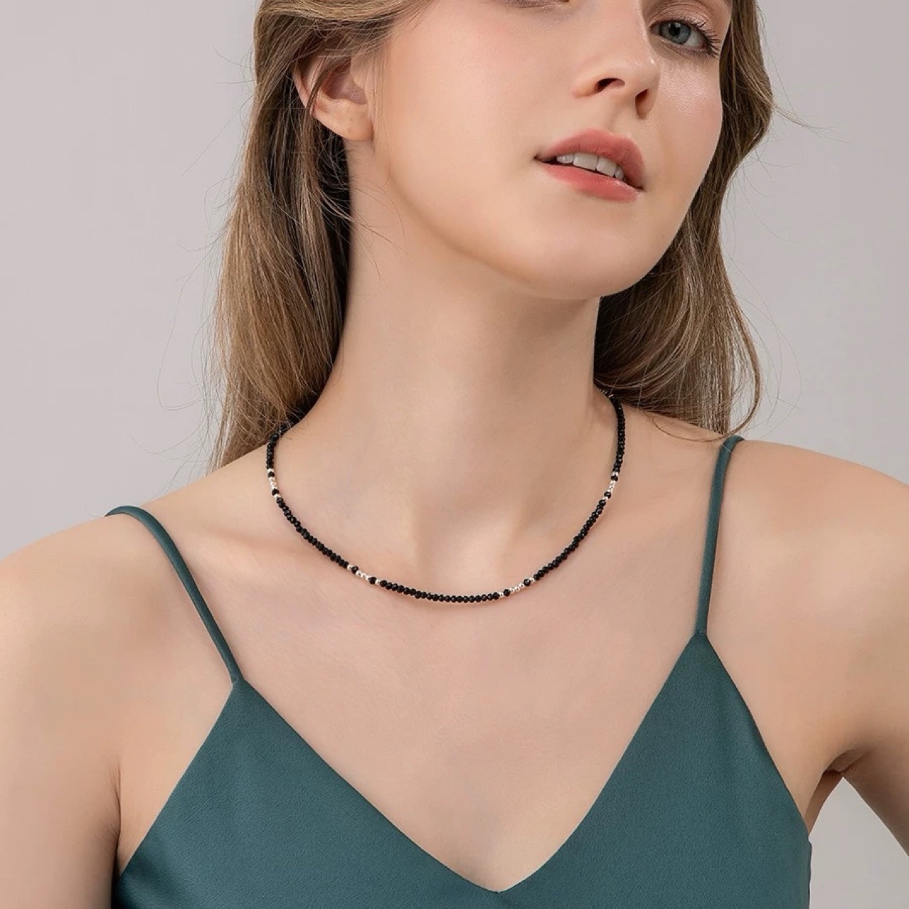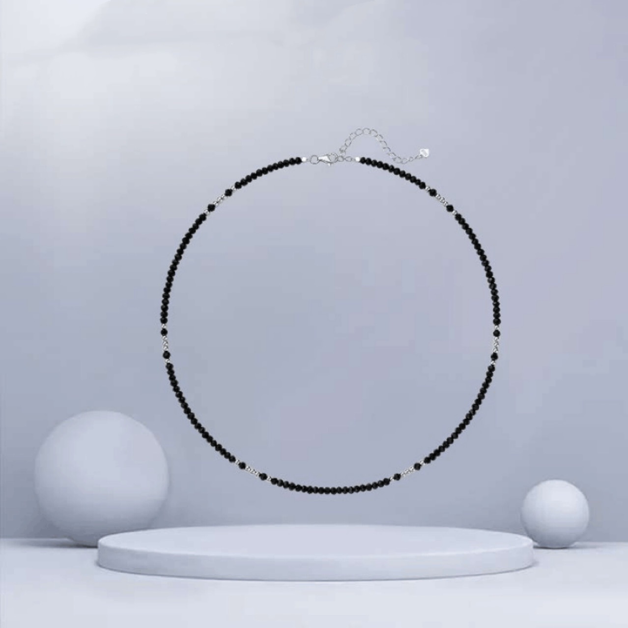 Высокое чувство черный остроконечный черный кристалл ожерелье женский s925 серебряный шейный шейный браслет простой модный бисер модная цепочка ключицы