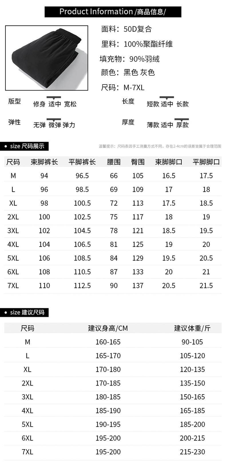 Осенние и зимние пуховые брюки большого размера мужские свободные теплые и холодные пуховые пуховые белые пуховые мужские брюки 90 бархатные брюки
