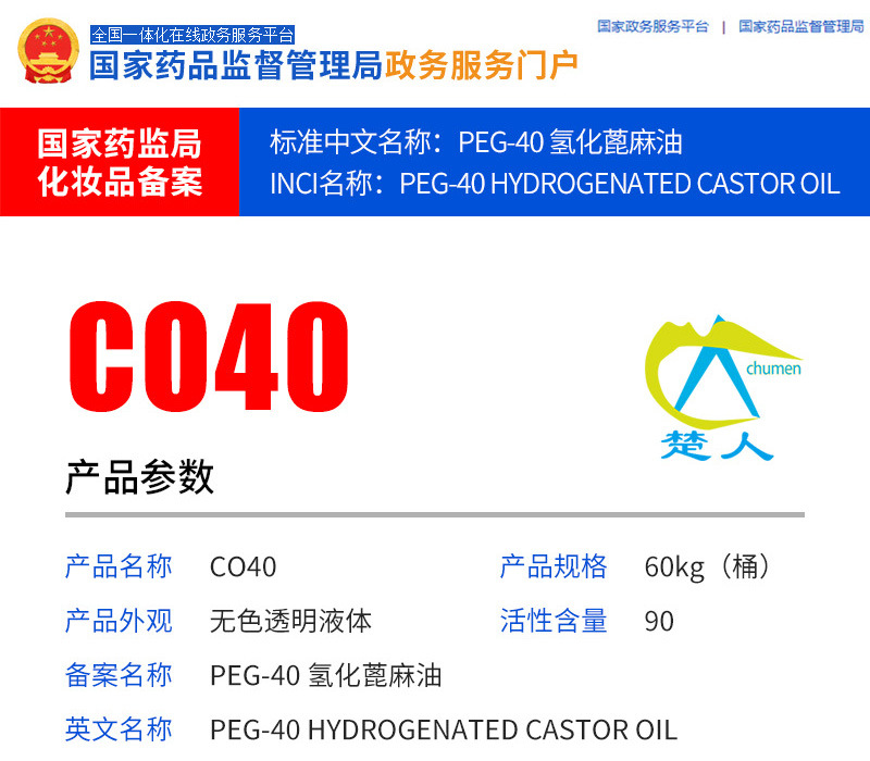 Внутренний растворитель CO40 PEG-40 гидрогенизированный касторовое масло косметический класс ароматизаторов