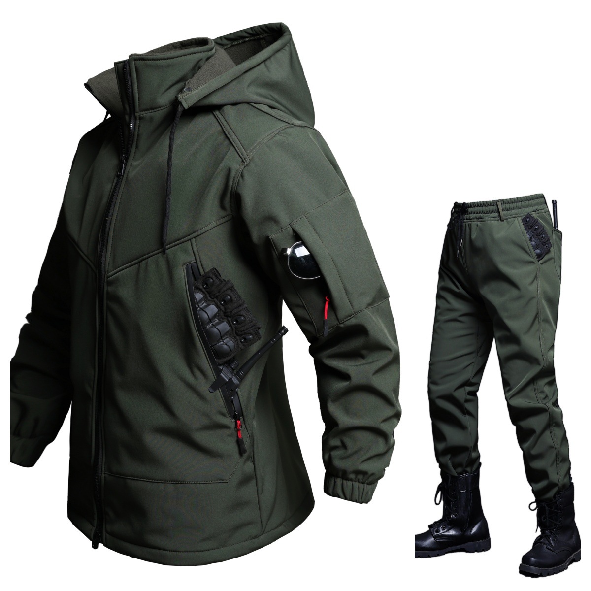 Осенний и зимний бархатный водонепроницаемый комплект куртки мягкая оболочка альпинистская теплая альпинистская одежда наружная защита труда грязная рабочая одежда