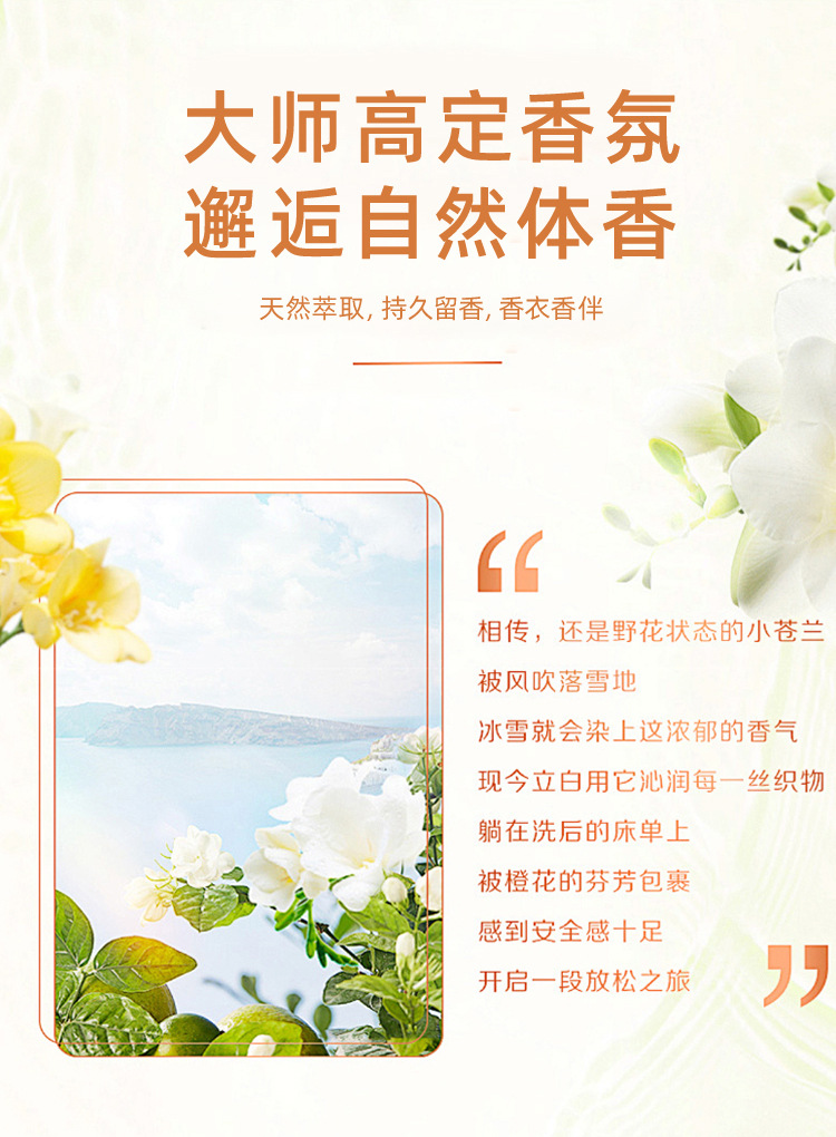 Цевье; Глубокая очистка; Защита цвета; Смягчение; Стойкий аромат; Для удаления пятен; Гладкая; Низкое пенообразование и легкое отбеливание; Мгновенная низкая вязкость
