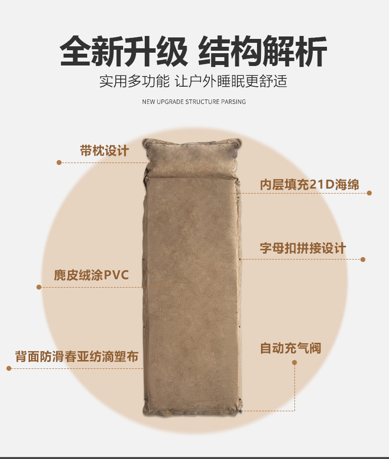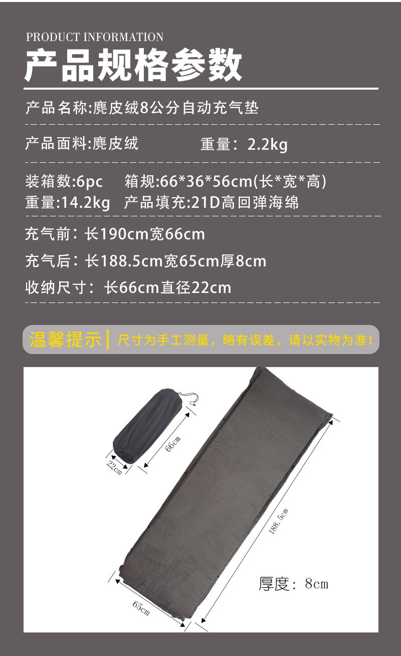 Замшевая 8cm утолщение открытый кемпинг автоматическая надувная подушка для кемпинга палатка спальная подушка влагостойкая надувная подушка для пикника