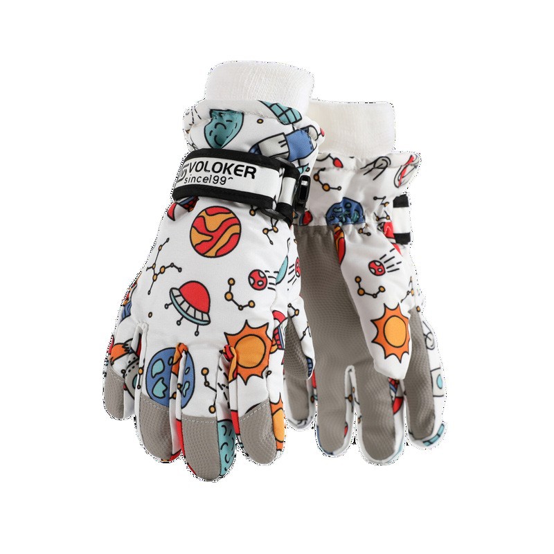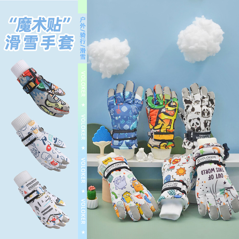Детские лыжные перчатки водонепроницаемые зимние теплые бархатные утолщенные мальчики и девочки дети лыжи специальные противоскользящие трансграничные