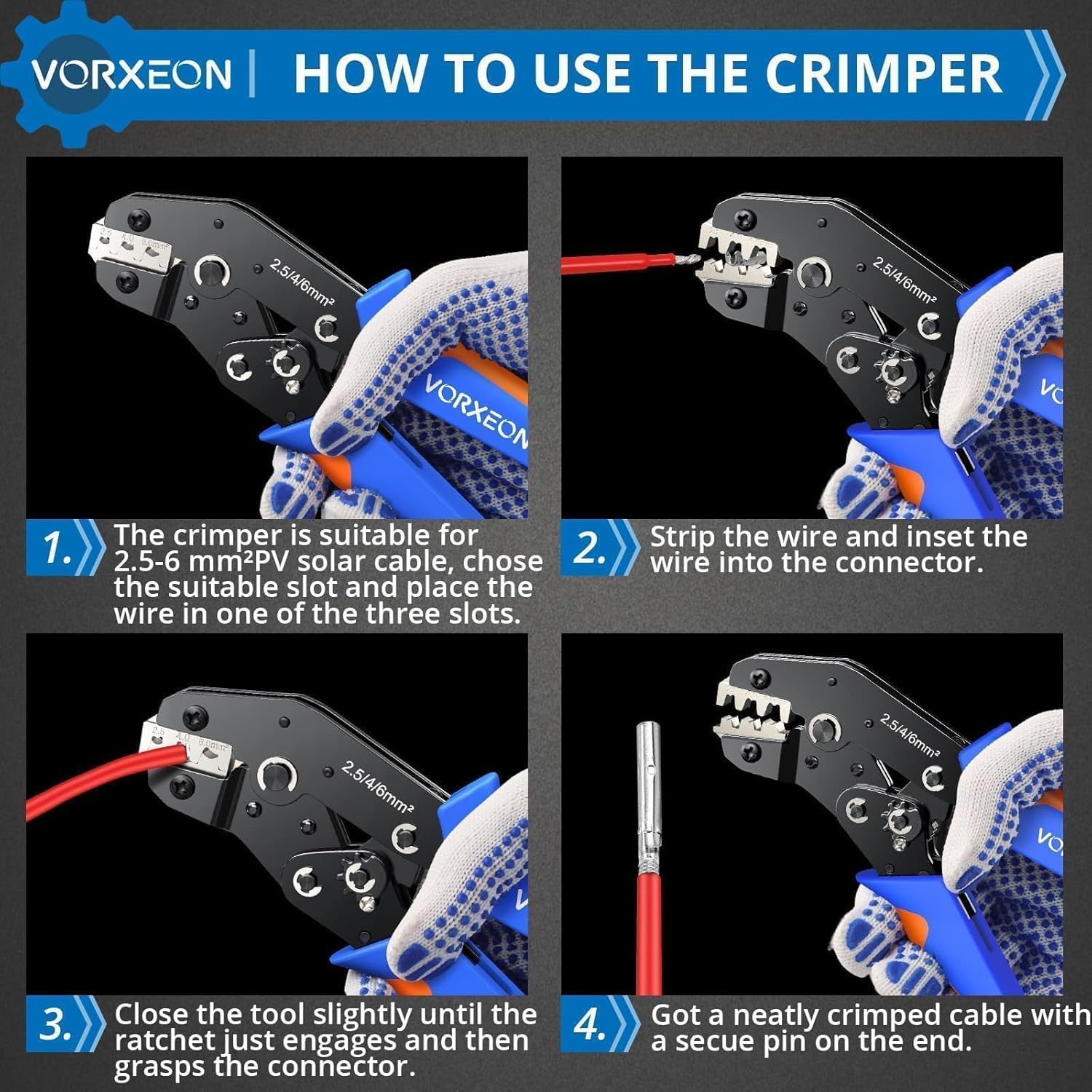 Набор для обжима кабеля VORXEON Solar Crimpzange для солнечных панелей 2,5/4,0/6,0 мм²