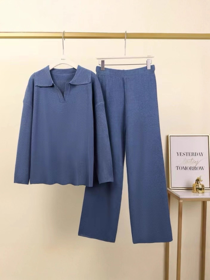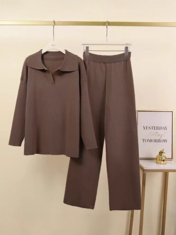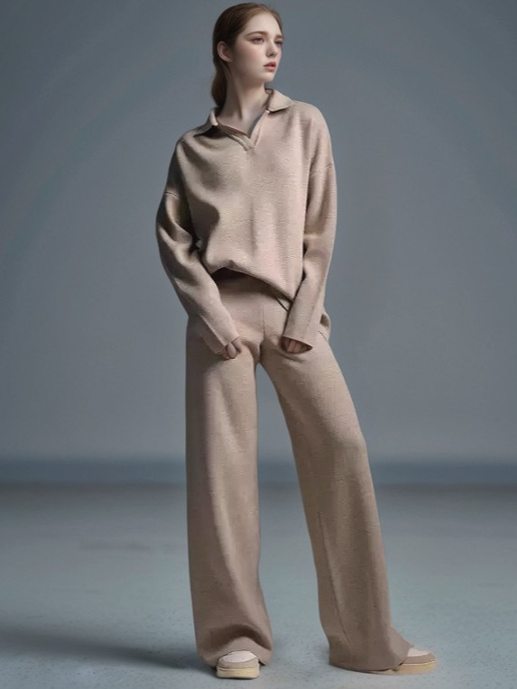 Свитер-поло с воротником-поло и широкие брюки — двухкомпонентный свободный комплект из коллекции Amazon для осени и зимы в европейском и американском стиле.