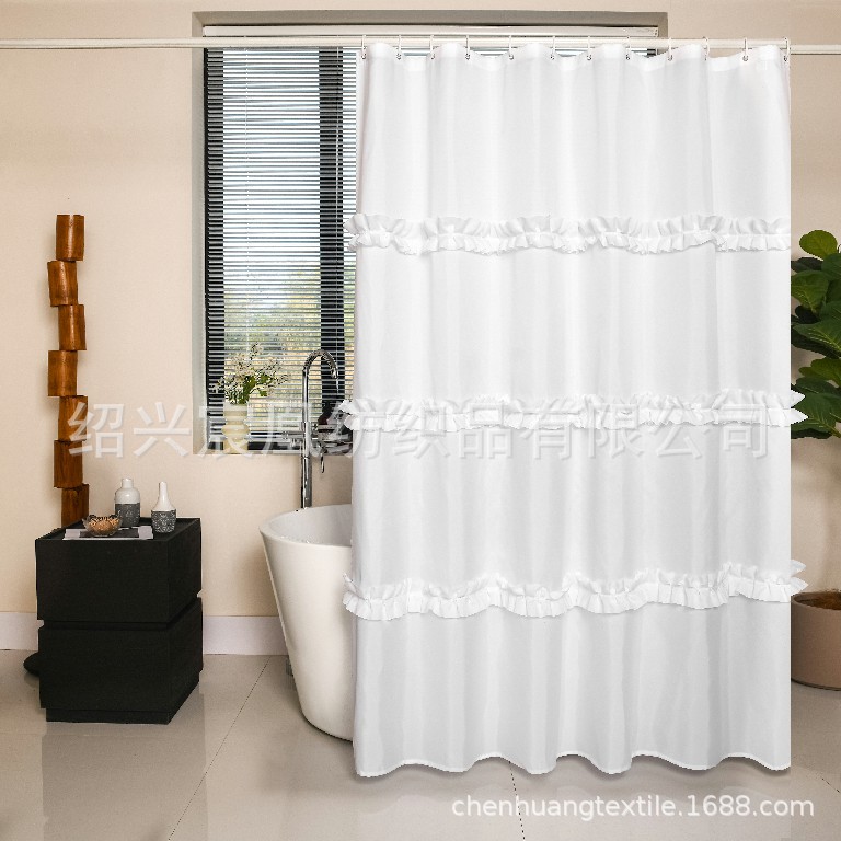Оптовая продажа белых душевых занавесок из полиэстера с кружевным блокированием от трансграничного производителя