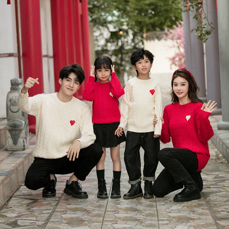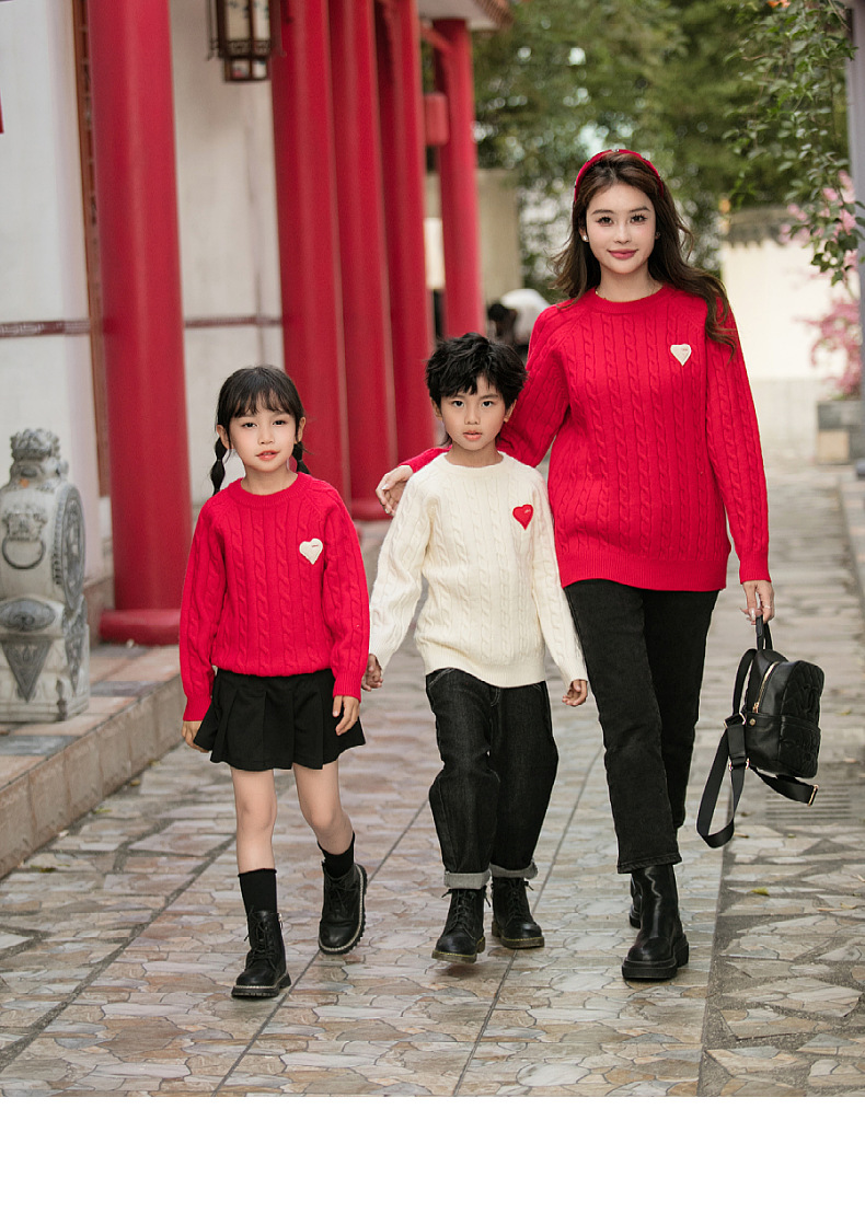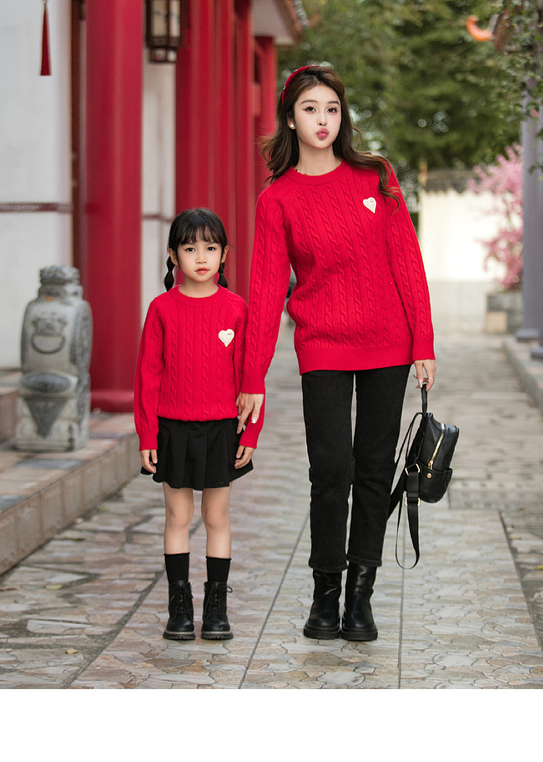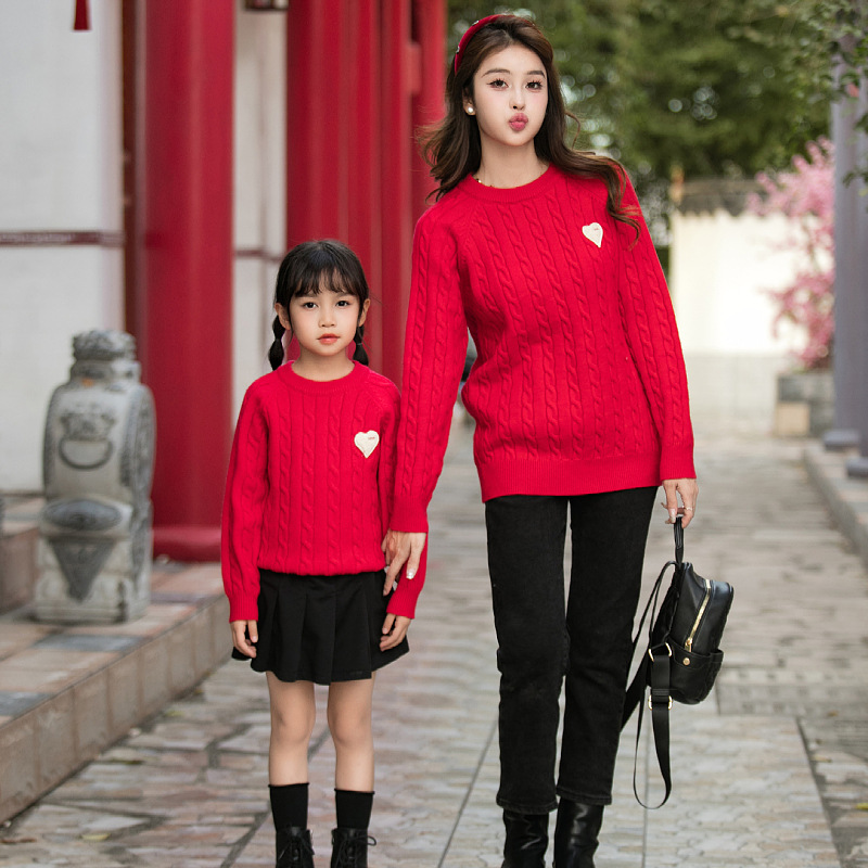 Мать и ребенок свитер мать и дочь свитер семья из трех человек 2023 осень и зима новая девушка красный свитер семейный наряд