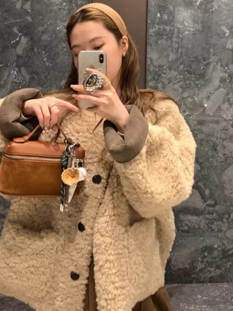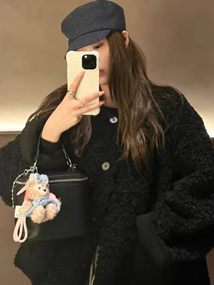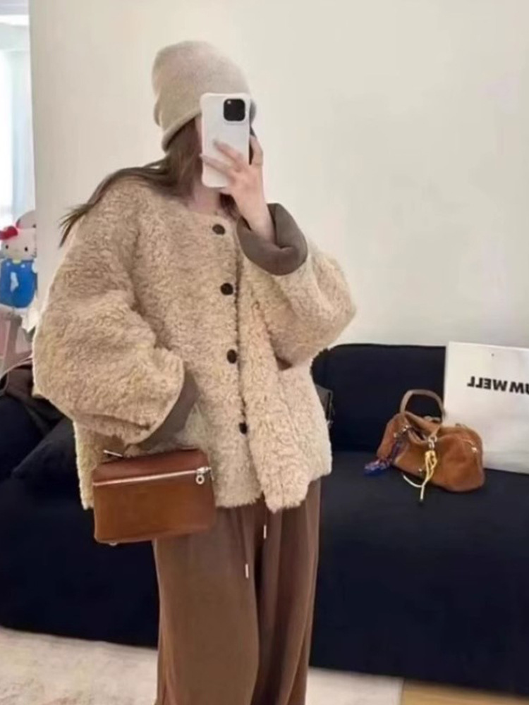 Ленивый ветер экологически чистая шерстяная куртка ягненка женская осень-зима короткая свободная толстая кожа